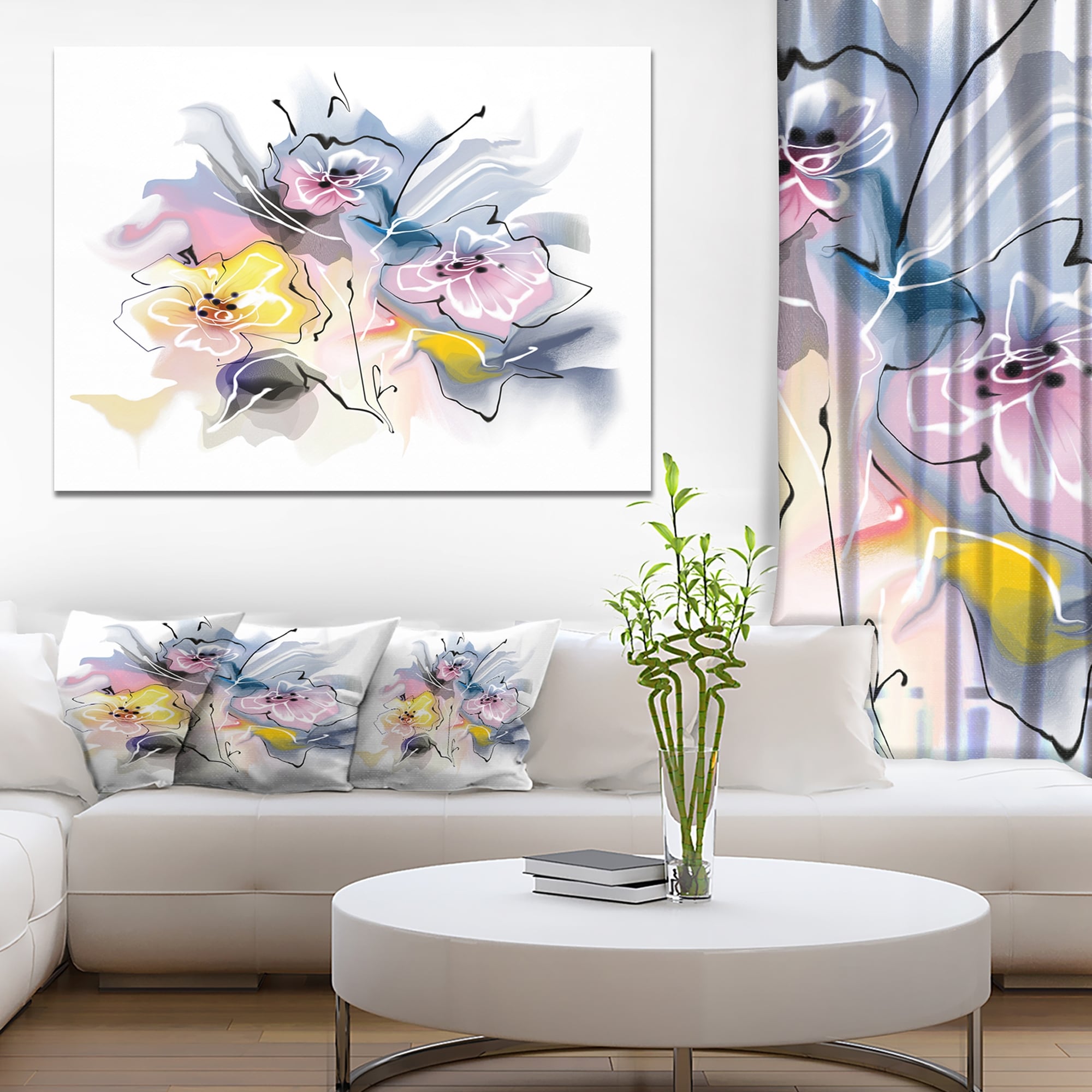 Designart "Retro Drawing of Flowers III" Vintage Canvas Wall Art Print