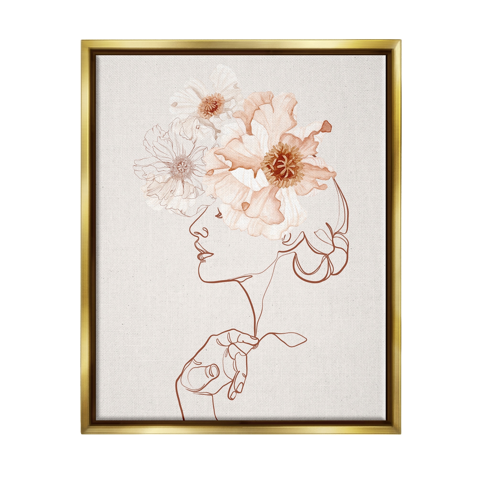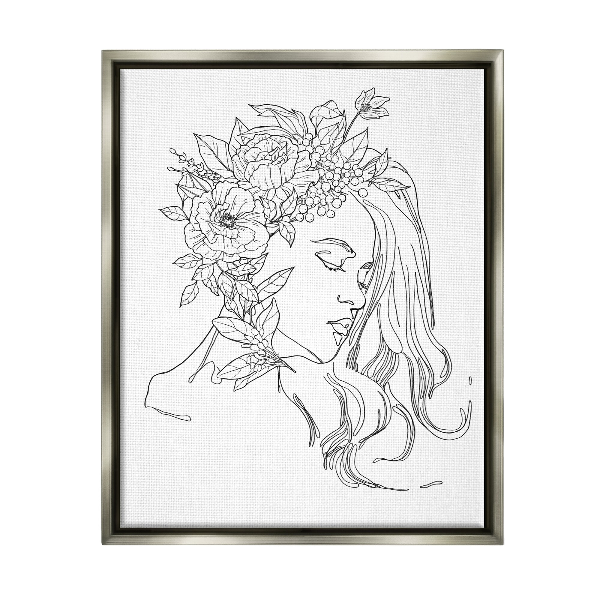 Stupell Industries Woman Face Detailed Blossoming Flowers Line Drawing Floater Frame, Design by Ziwei Li
