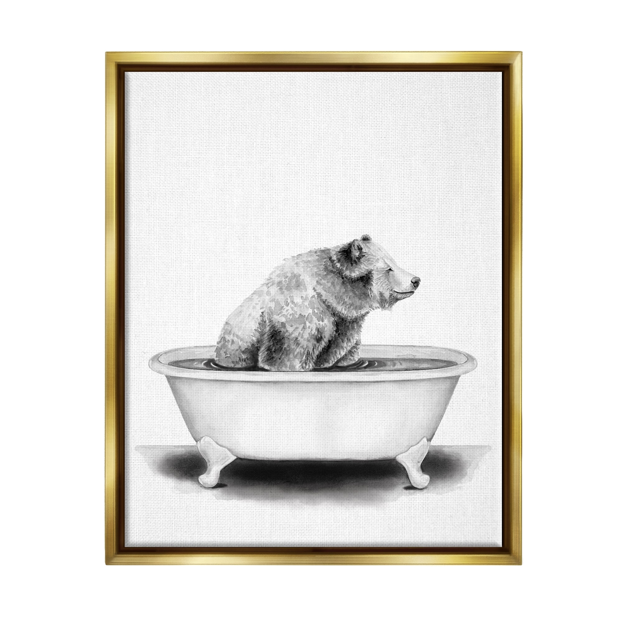Stupell Industries Bear in A Tub Funny Animal Bathroom Drawing Floater Frame - Black