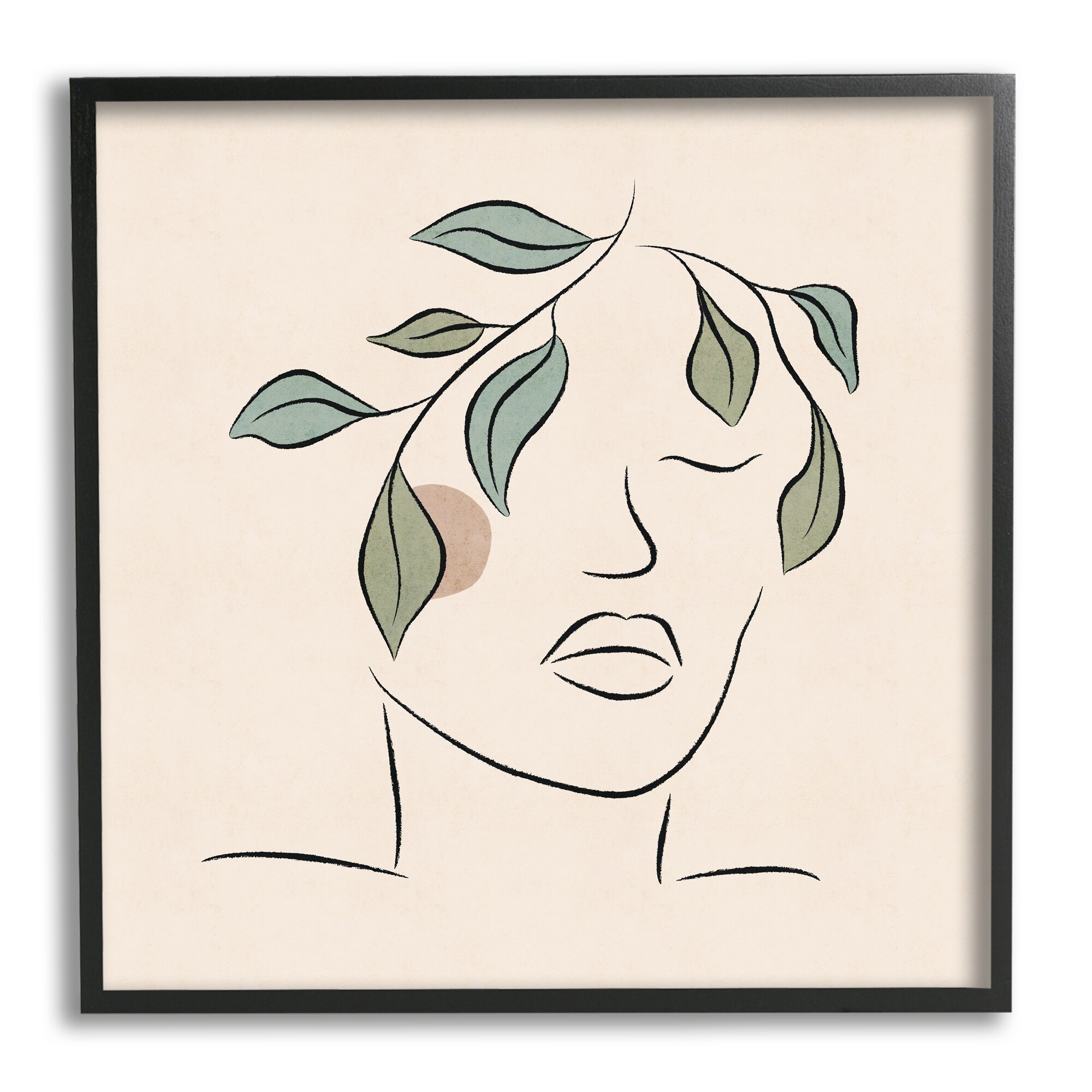 Stupell Industries Blushing Woman Face Botanical Outline Doodle Drawing Framed Wall Art, Design by JJ Design House LLC - Beige