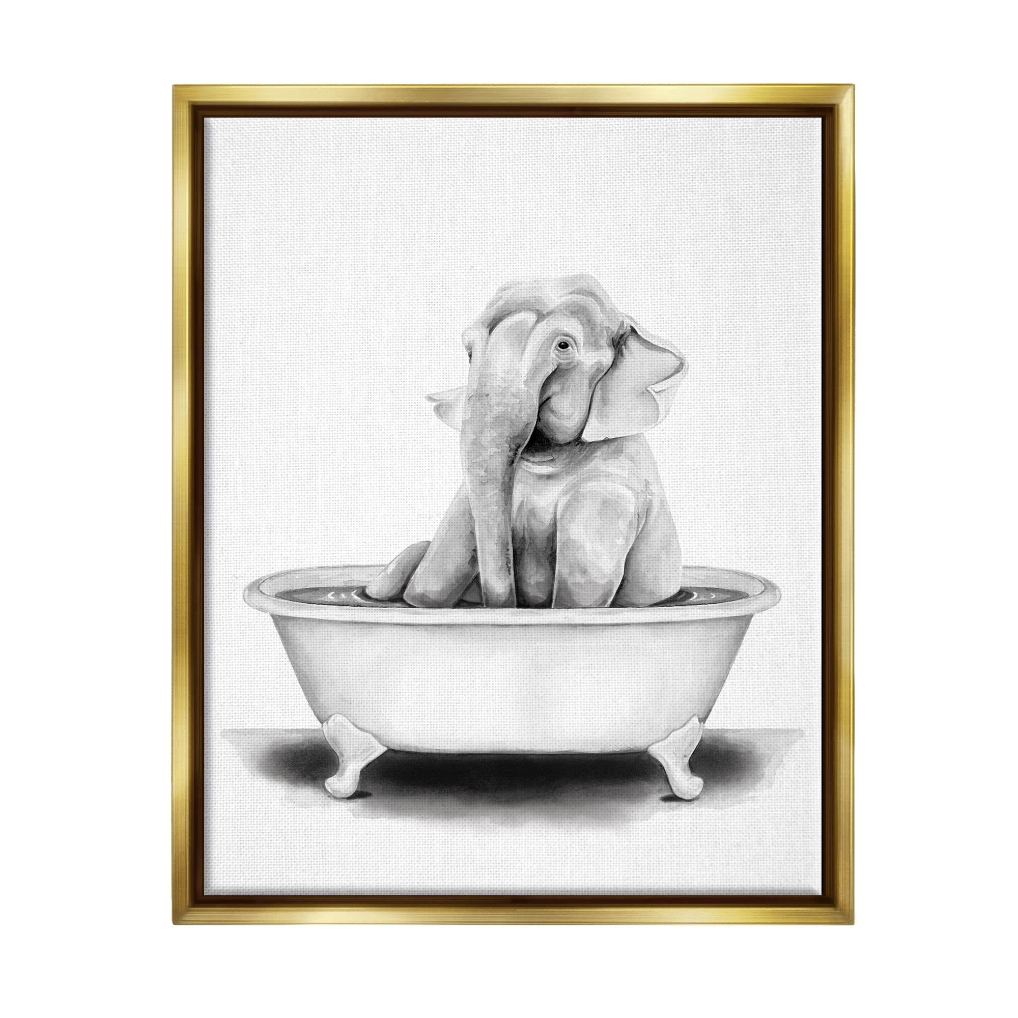 Stupell Industries Elephant in A Tub Funny Animal Bathroom Drawing Floater Frame - Black