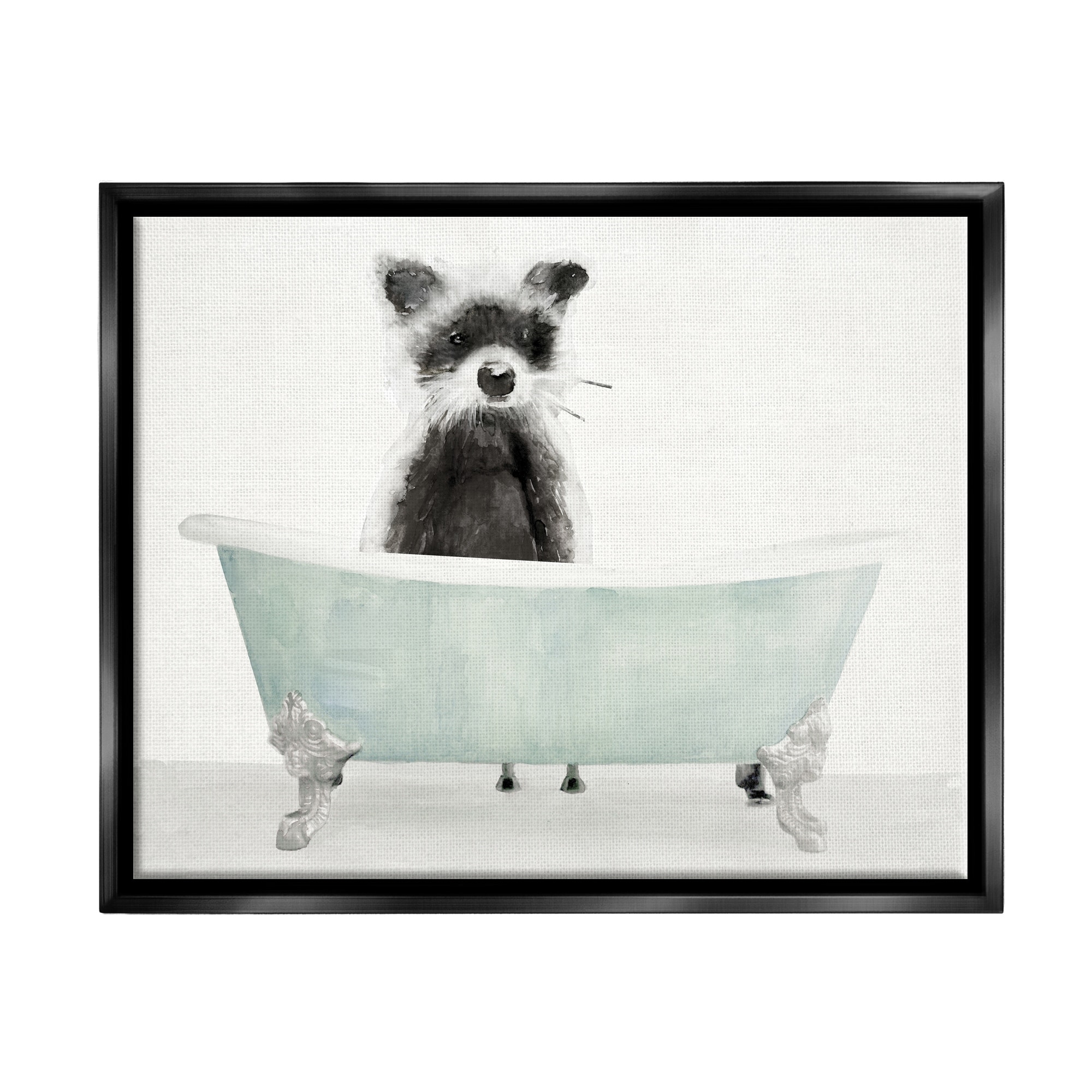 Stupell Industries Raccoon in A Tub Funny Animal Bathroom Drawing Floater Frame - White