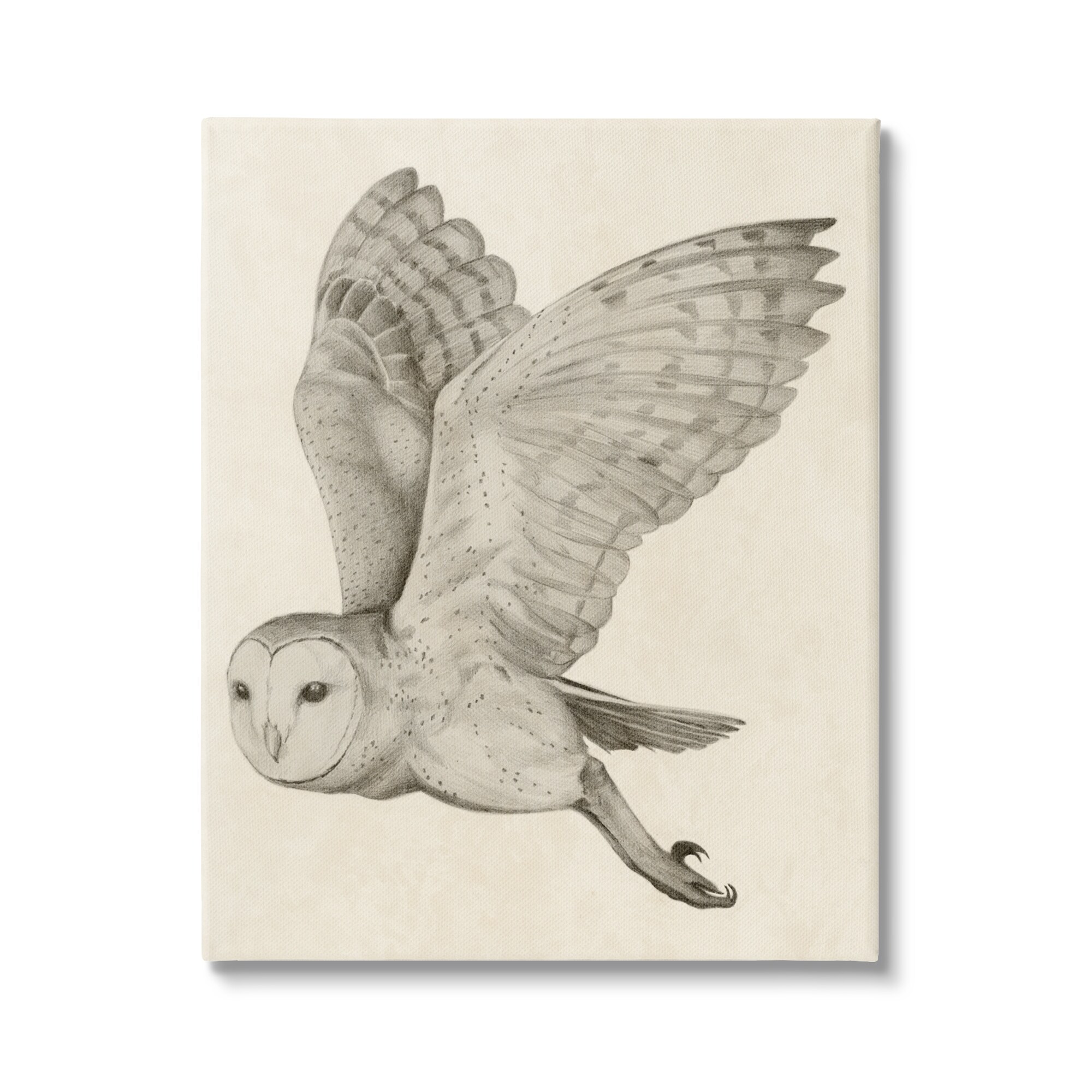 Stupell Industries Flying Barn Owl Wings Detailed Monochrome Drawing Canvas Wall Art - White