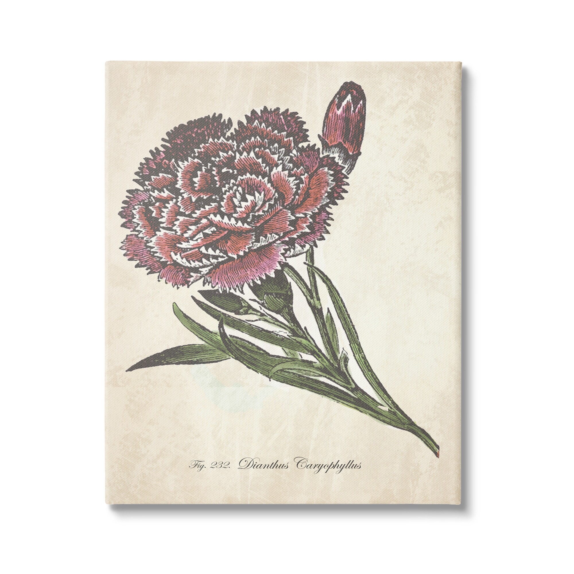 Stupell Industries Botanical Carnation Flower Drawing Red Green Design Canvas Wall Art