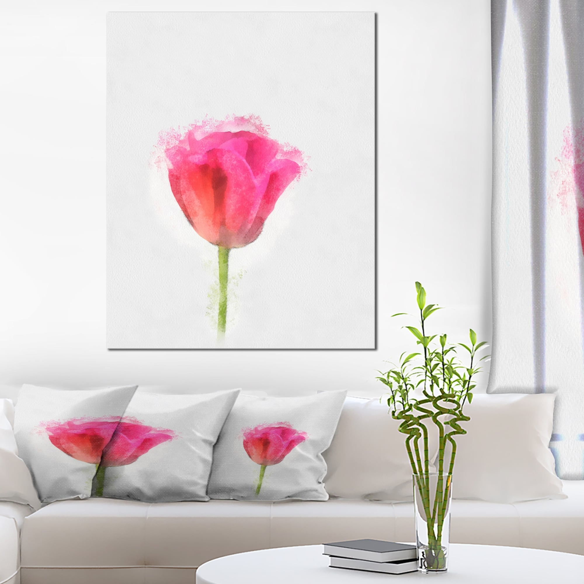 Designart "Bloomy Pink Tulip on White Drawing" Flower Artwork Print on Canvas