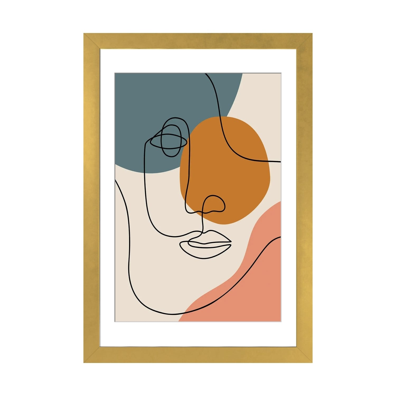 Designart "Monochrome One Line Drawing Portraits" Modern Framed Canvas Wall Art Print