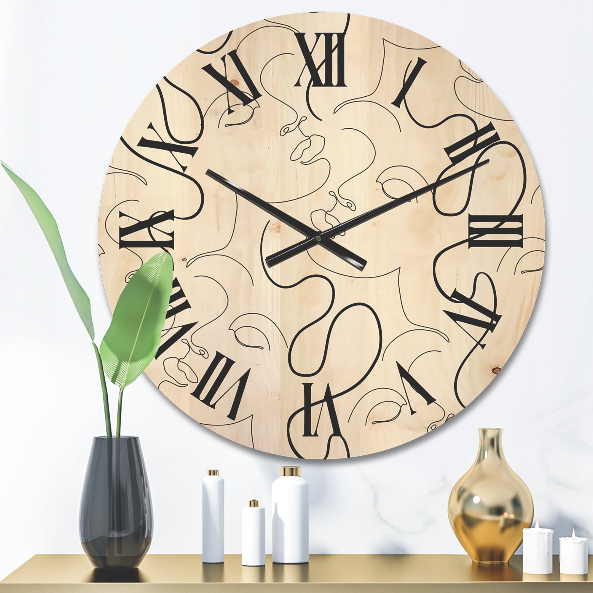 Designart 'Monochrome One Line Drawing Portraits' Modern Wood Wall Clock
