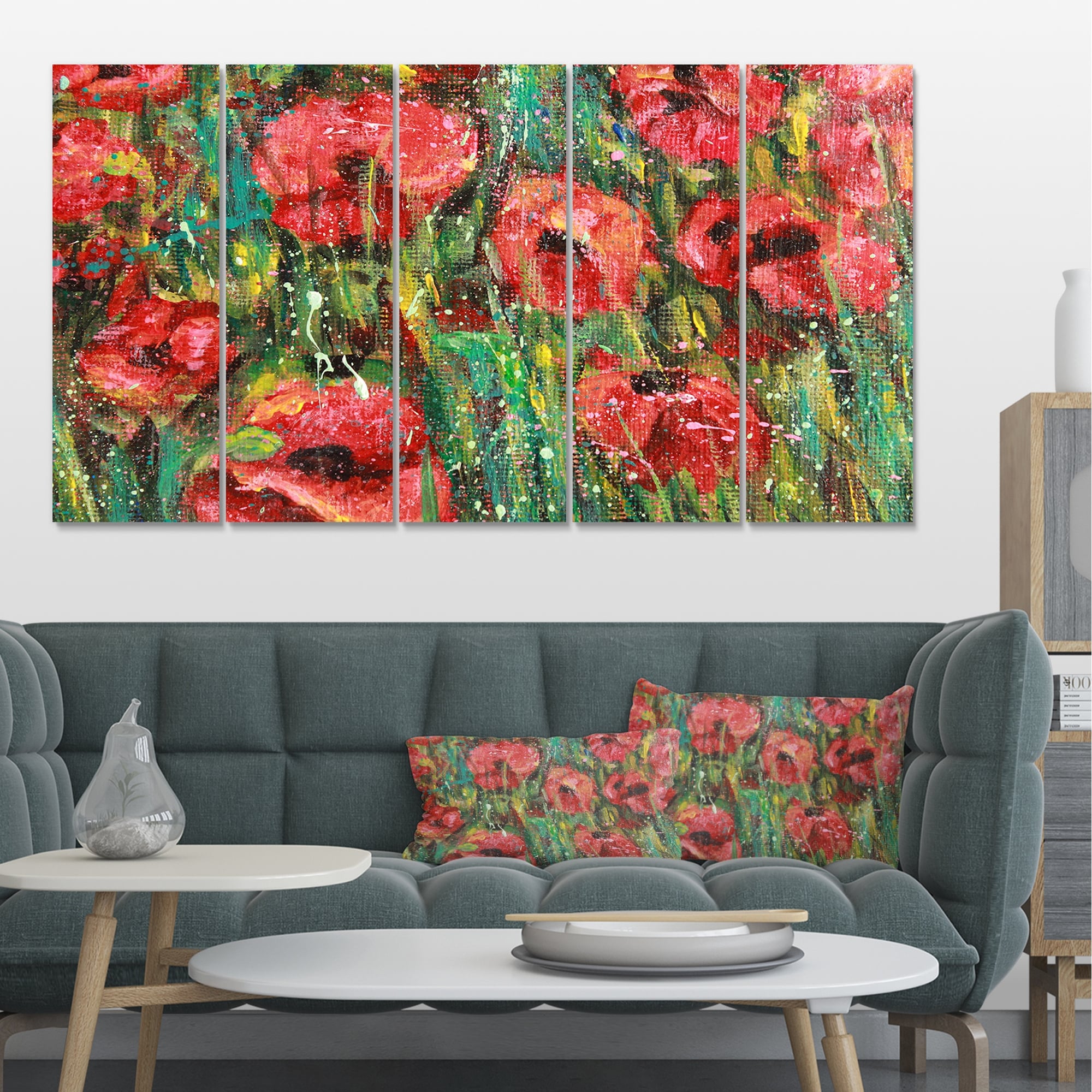 Designart "Red Poppies Watercolor Drawing" Red" Extra Large Floral Wall Art
