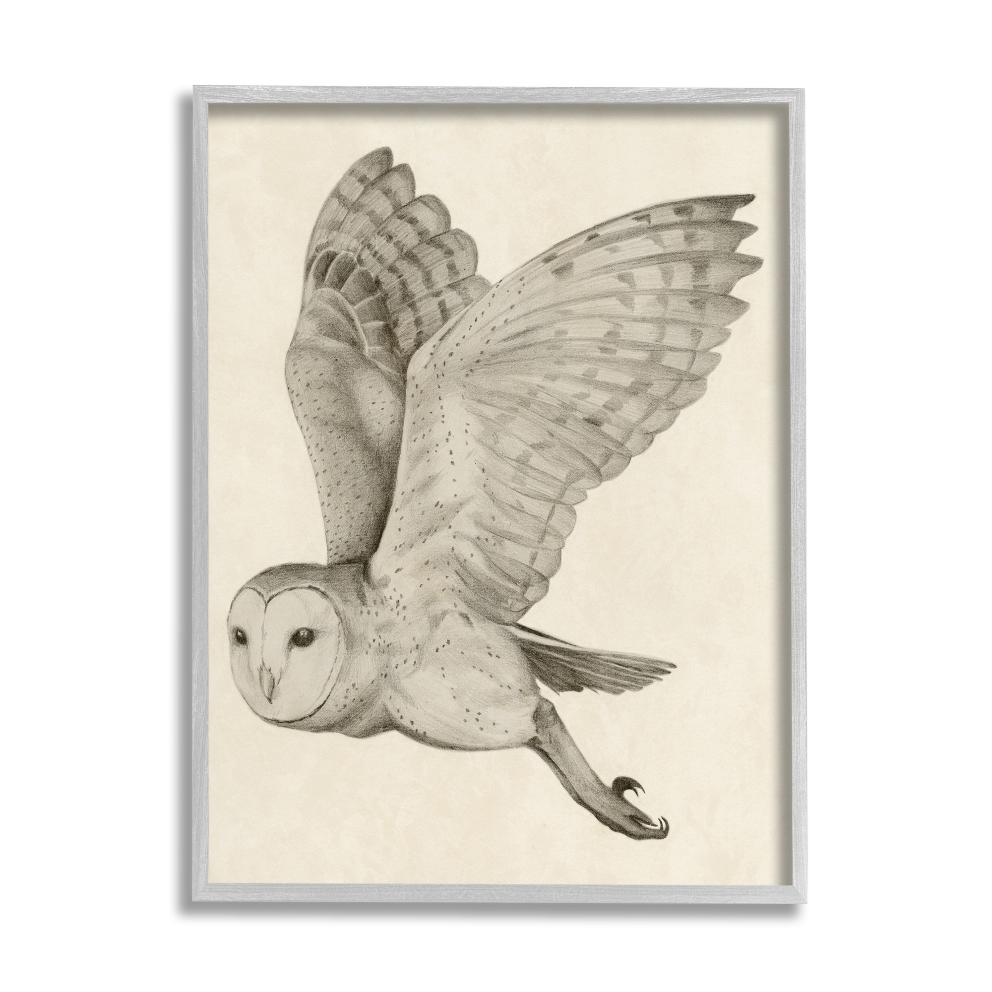 Stupell Flying Barn Owl Wings Detailed Monochrome Drawing Framed Wall Art - Off-White