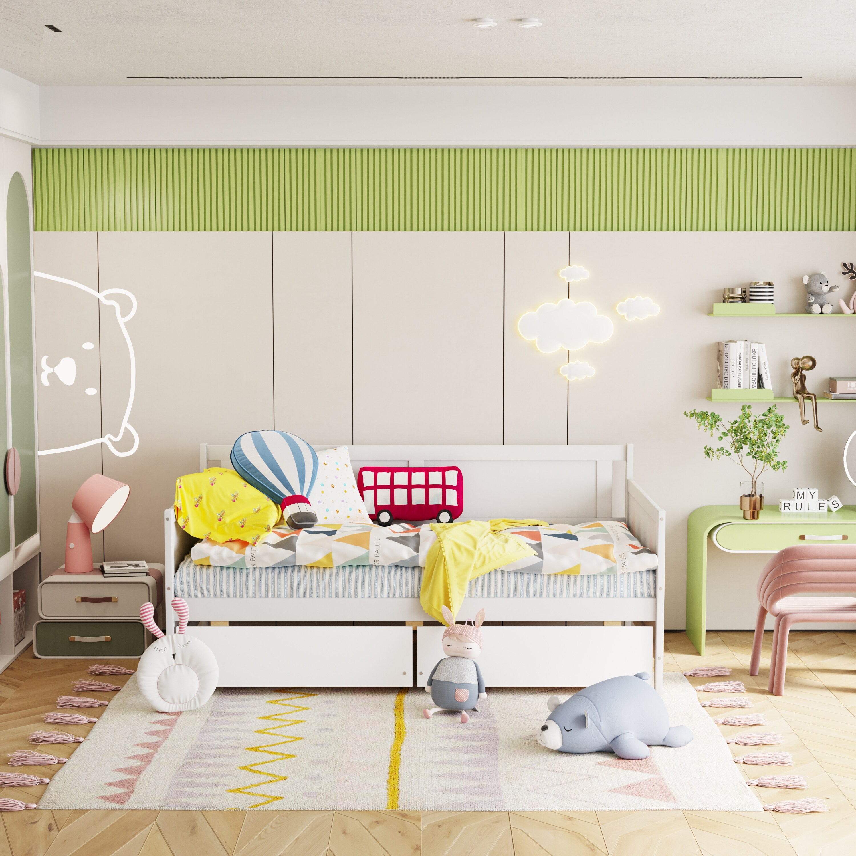 Wooden Daybed with 2 Drawers & Guardrail for Maximized Space & Comfort