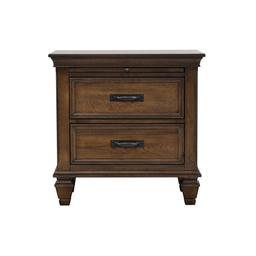 Wood Nightstand with 2 Drawers in Burnished Oak