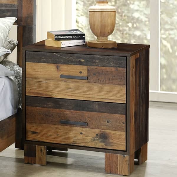 Rustic Reclaimed Wood Design 2 Drawer Nightstand