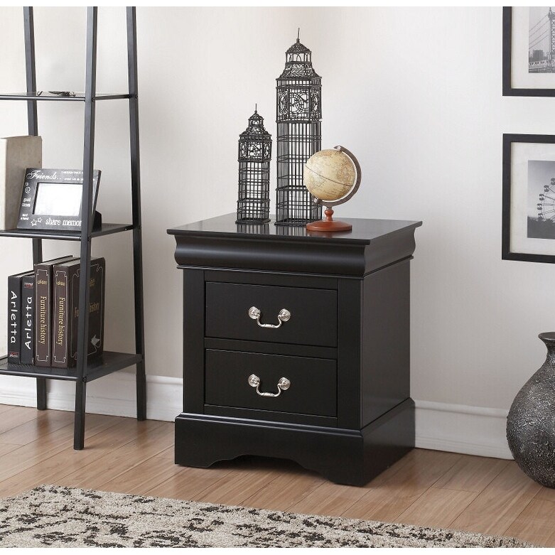 Global Pronex Wood Nightstand with 2 Storage Drawers in Black