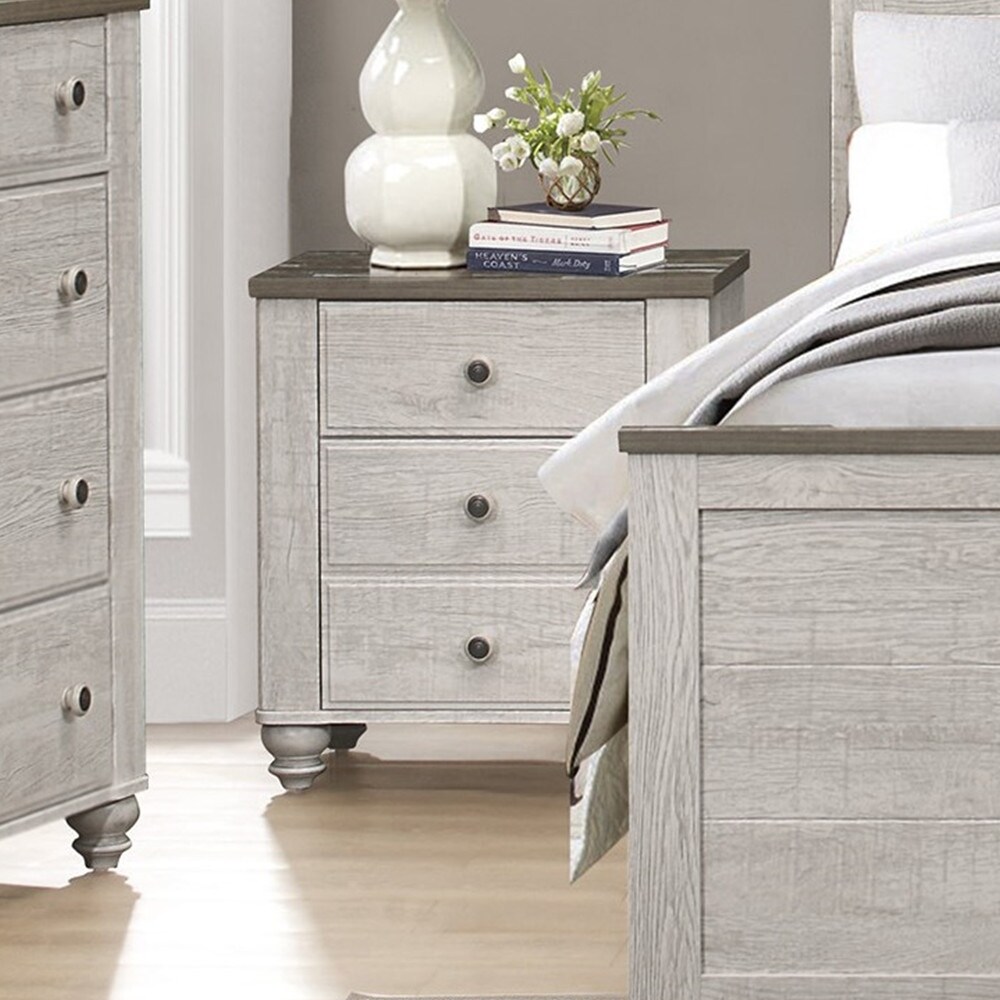 Weathered Grey Finish Wood 3 Drawer Nightstand