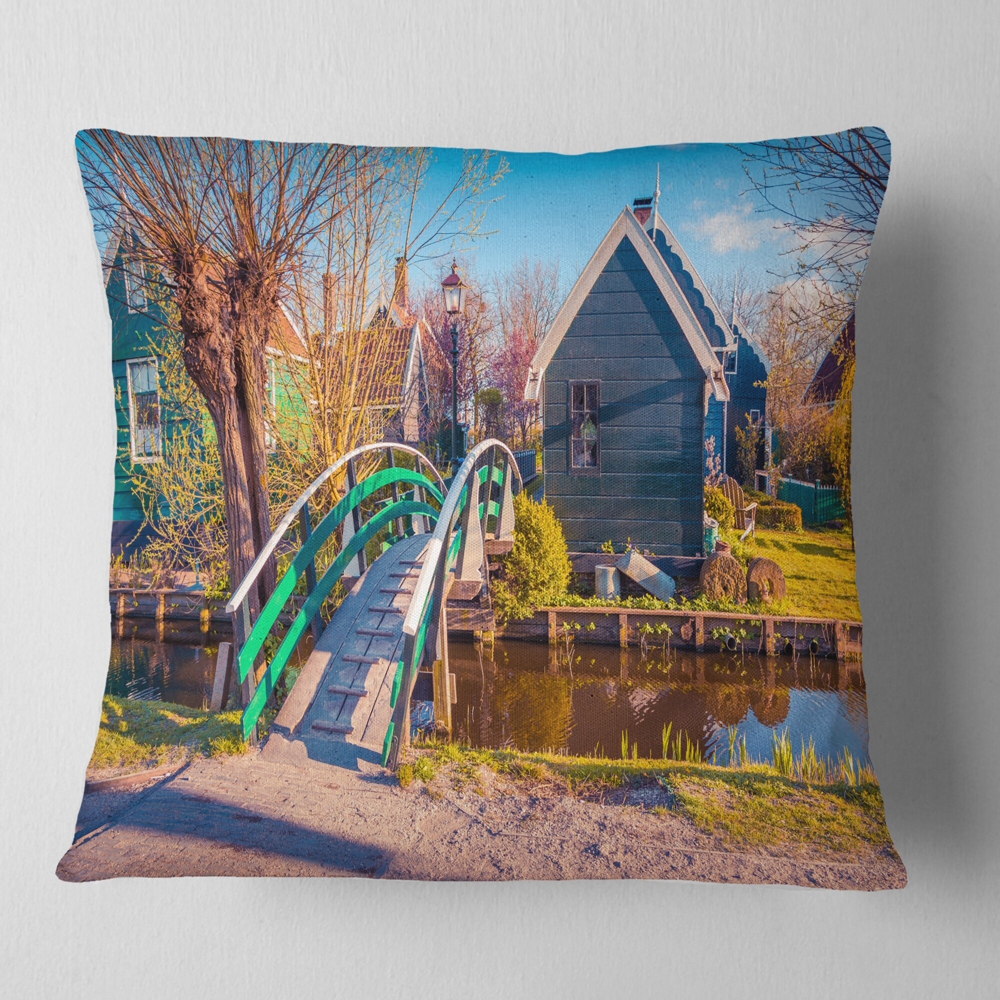 Designart 'Dutch Buildings in Zaanstad Village' Landscape Printed Throw Pillow