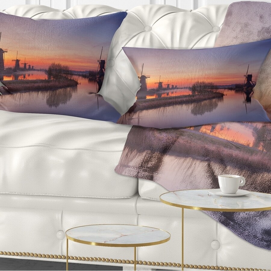 Designart 'Dutch Windmills Panorama' Abstract Throw Pillow