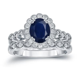Auriya Vintage 1ct Sapphire Oval and 3/5ctw Halo Diamond Engagement Ring Set Platinum