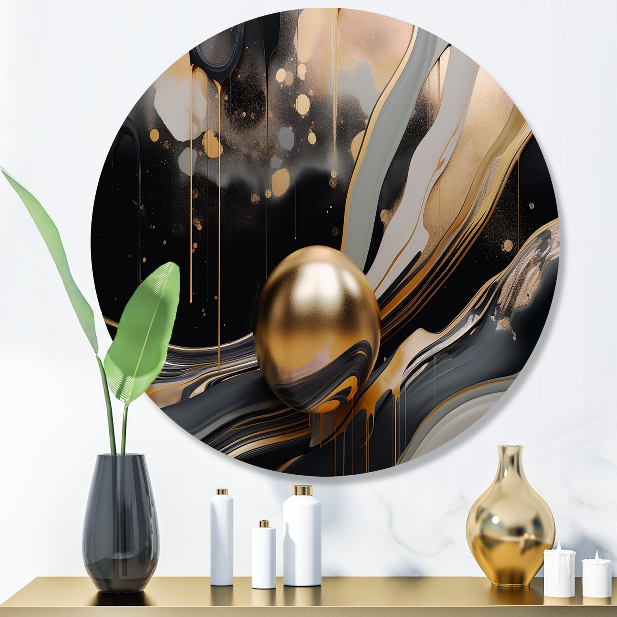 Designart "Gold And Black Marbled Euphoria II" Abstract Marble Metal Round Wall Art