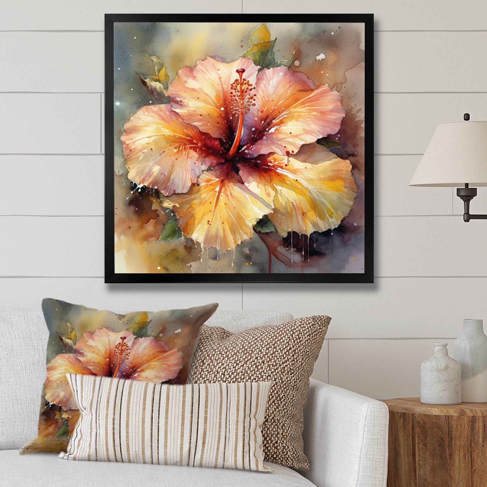 Designart "Pink Beige Hibiscus Euphoria" Floral Hibiscus Framed Canvas Wall Art