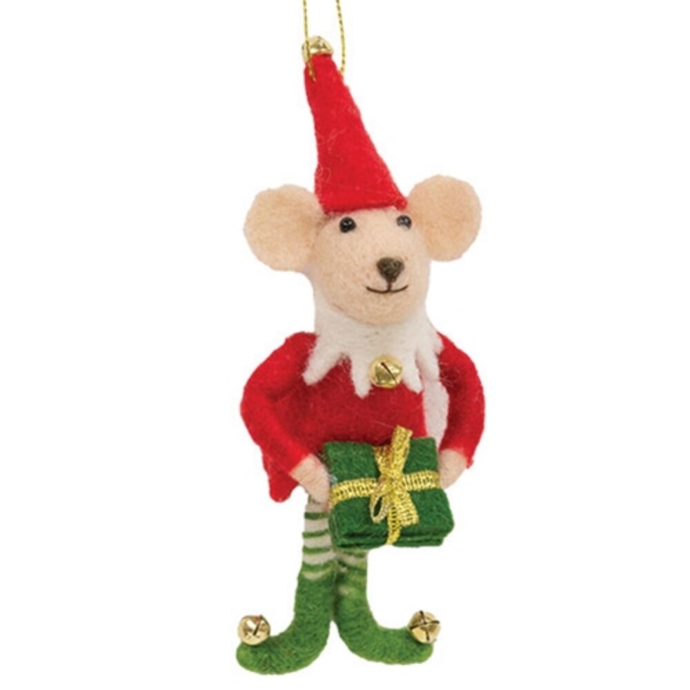 Elf Mouse Felted Ornament - 5.5" x 3"