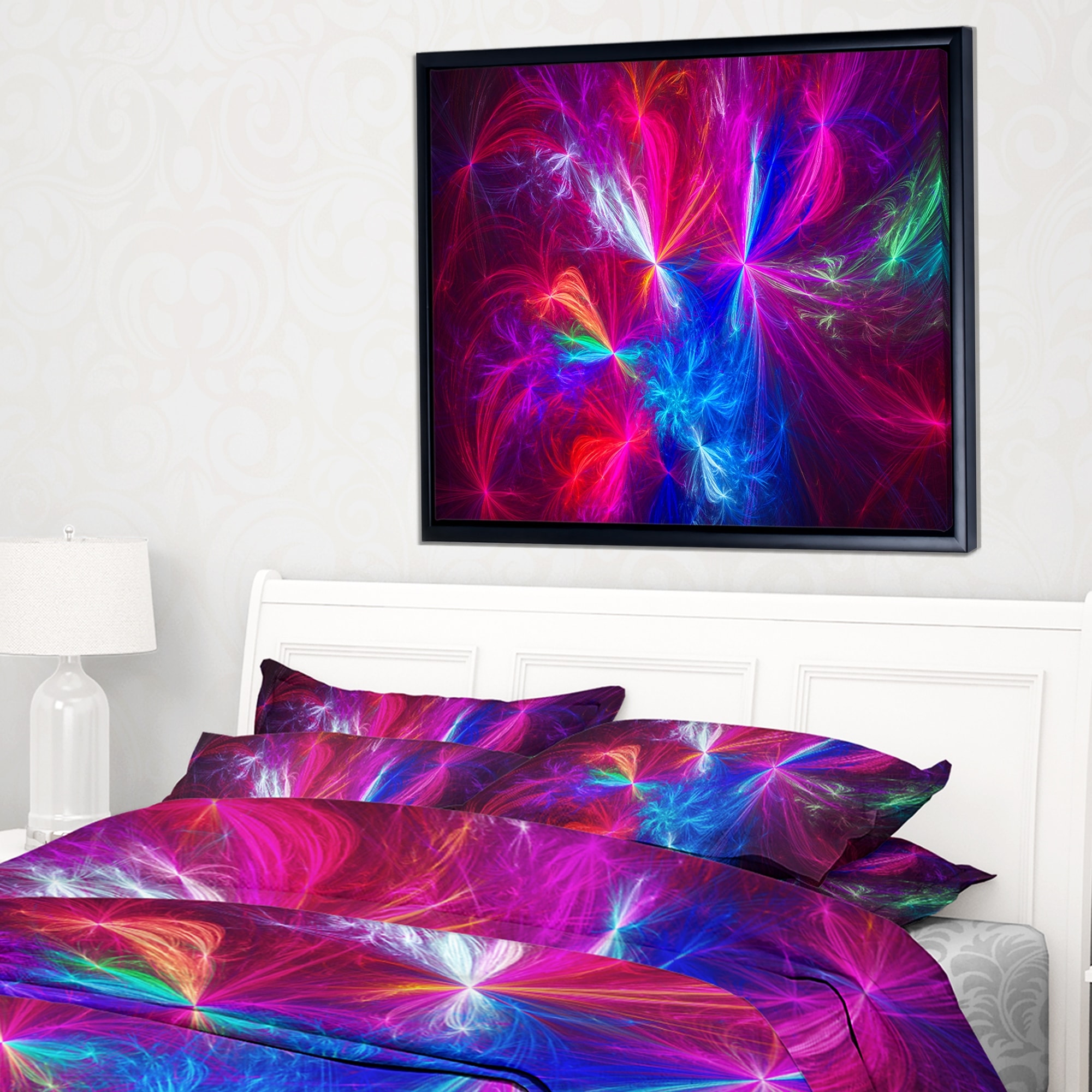 Designart "Blue Pink Colorful Fireworks" Abstract Art on Framed Canvas