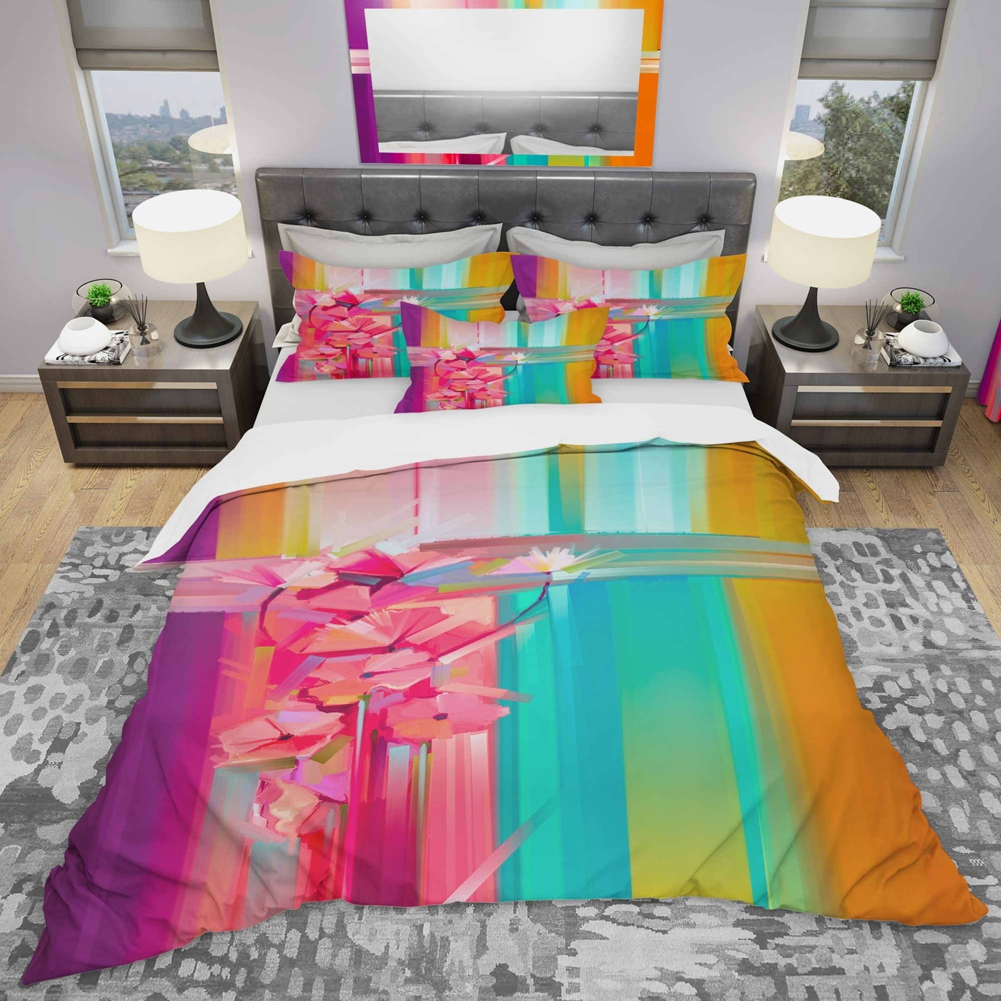 Designart 'Abstract Red Gerbera Spring Flower' Modern & Contemporary Bedding Set - Duvet Cover & Shams