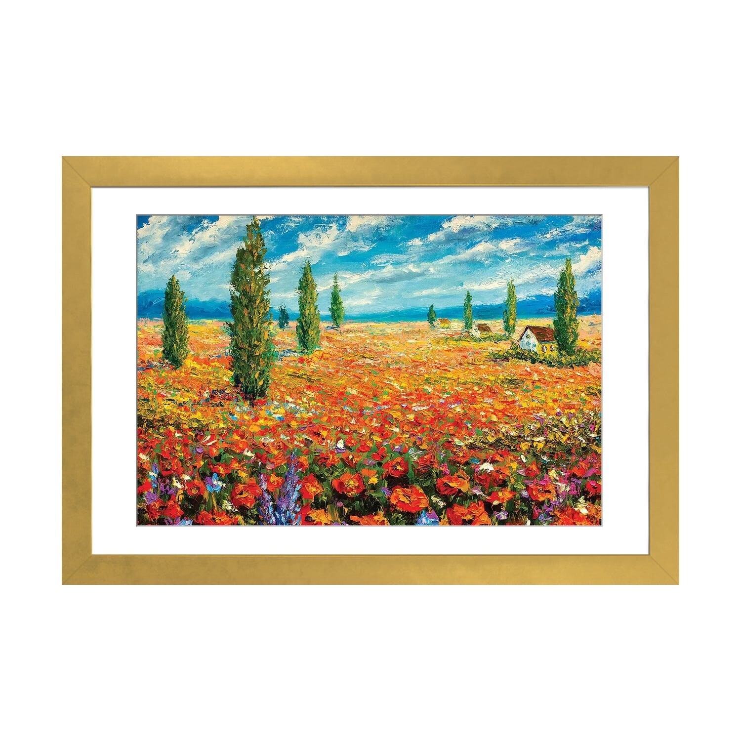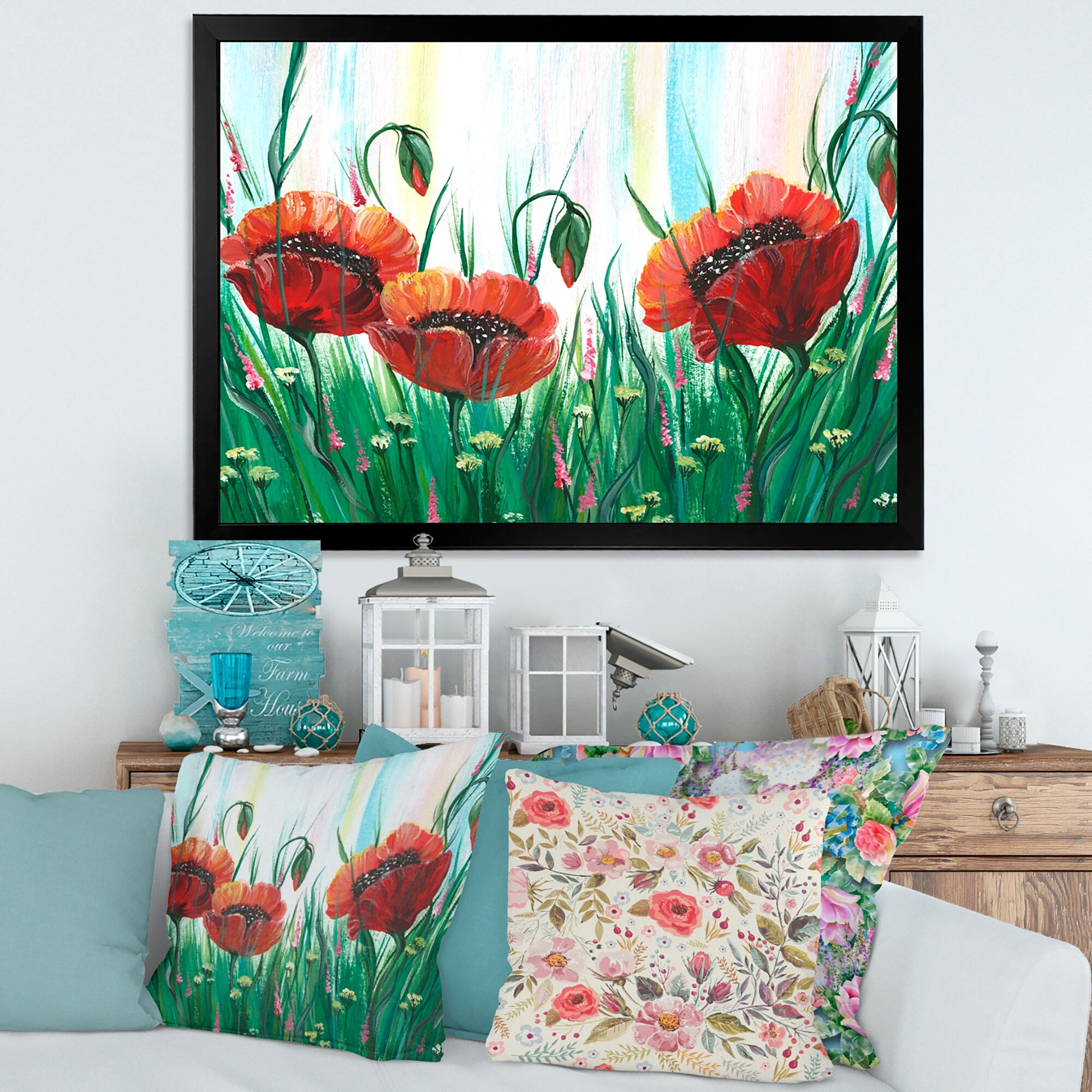 Designart "Red Bright Poppy Flowers on A Green Meadow" Traditional Framed Art Print