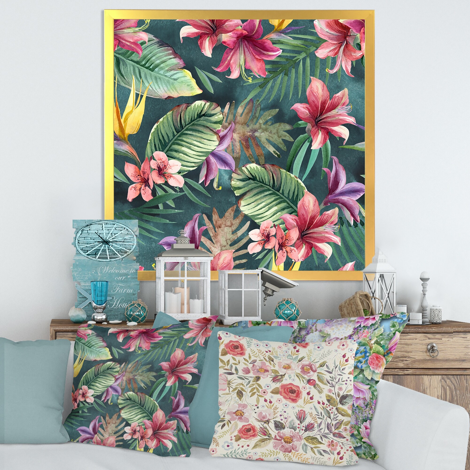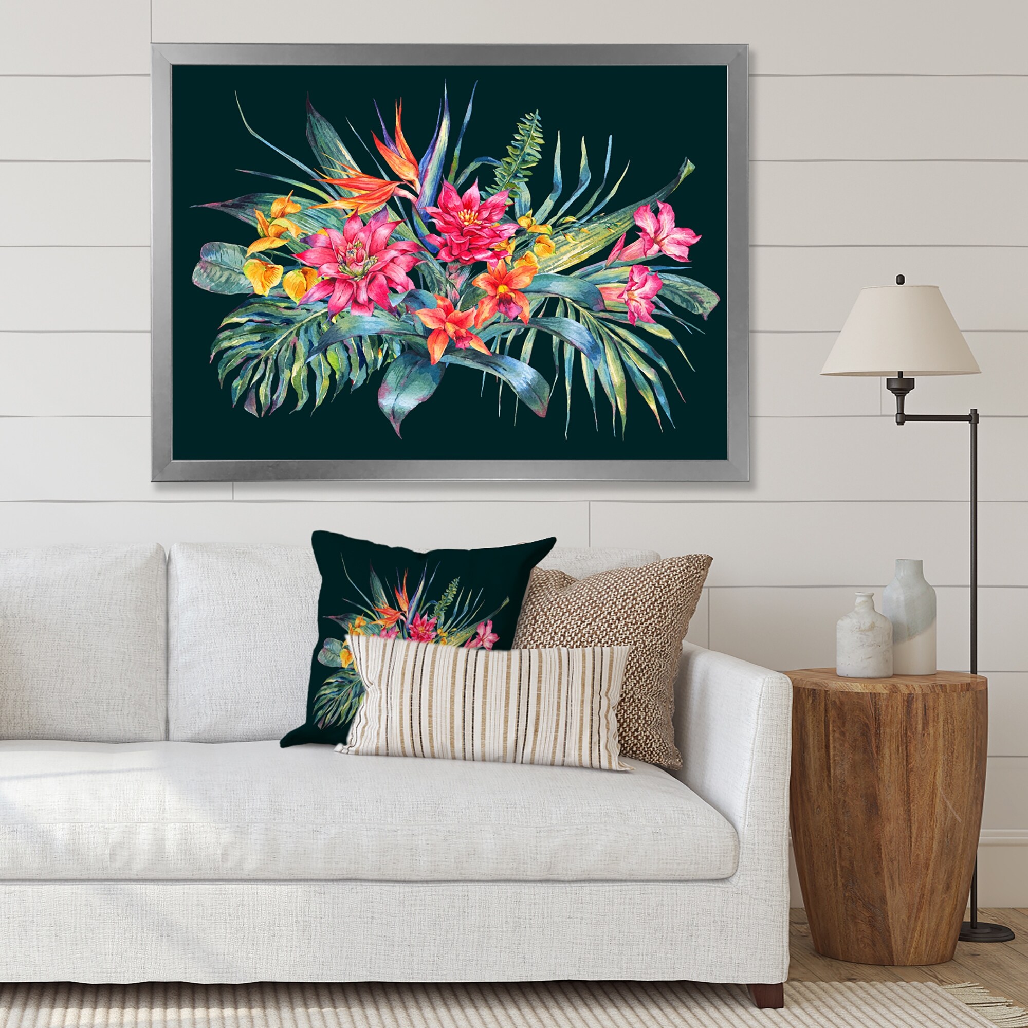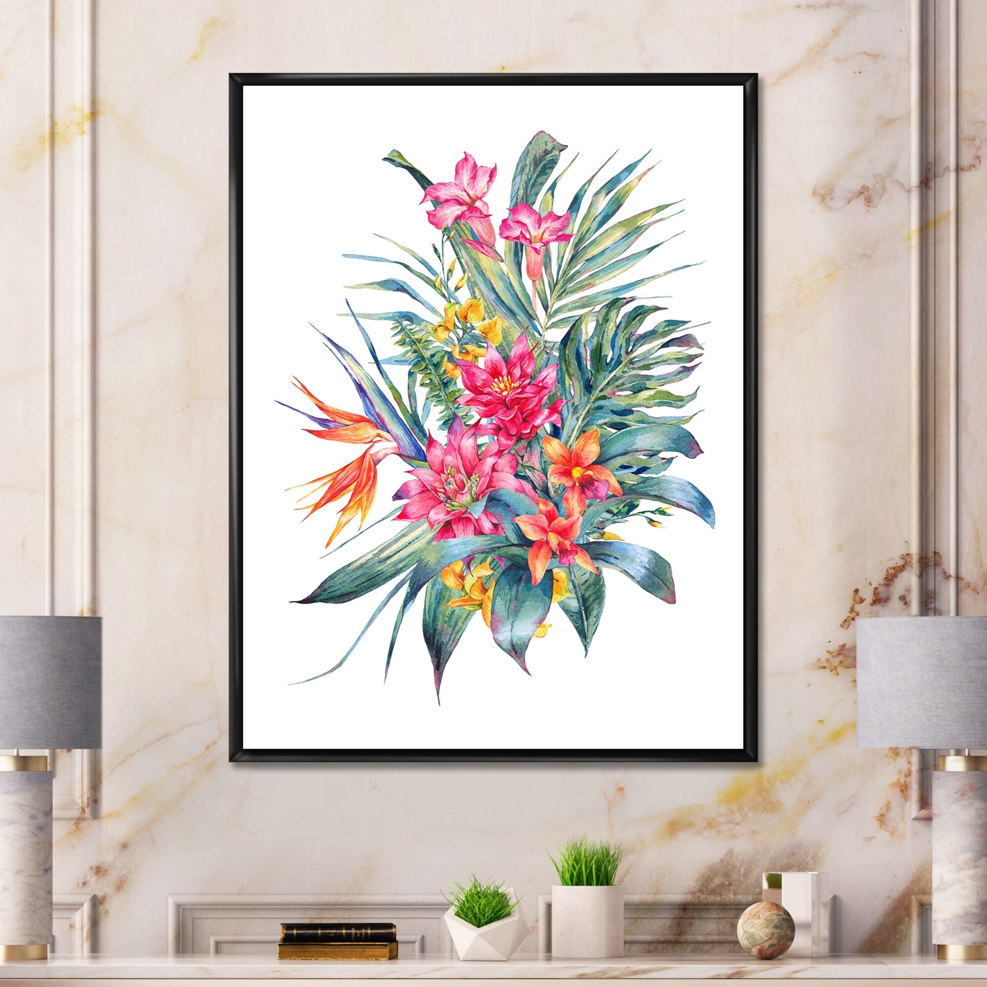 Designart "Bouquet Of Tropical Red Flowers" Tropical Framed Canvas Wall Art Print