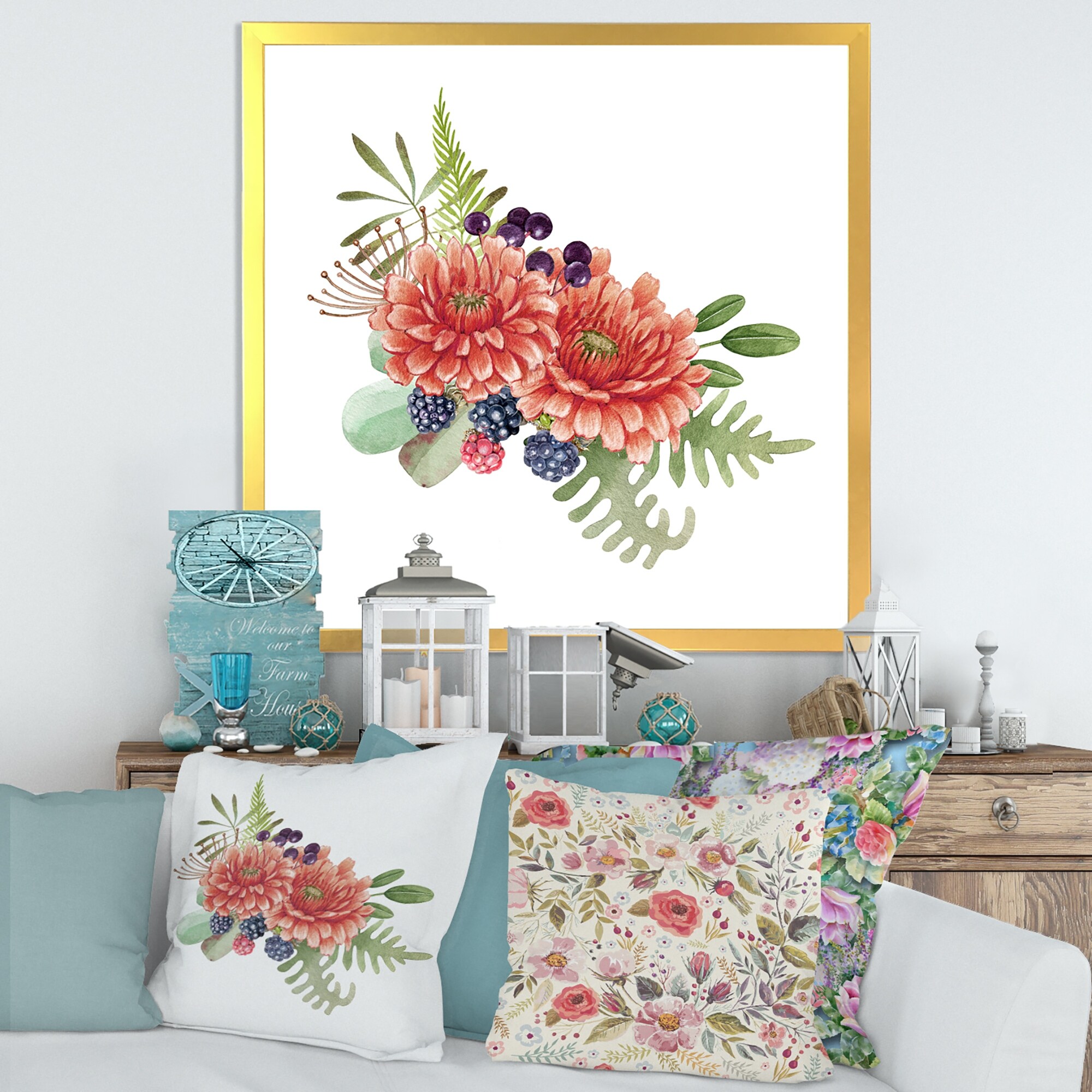 Designart "Red Autumn Flowers Bouquet I" Traditional Framed Art Print