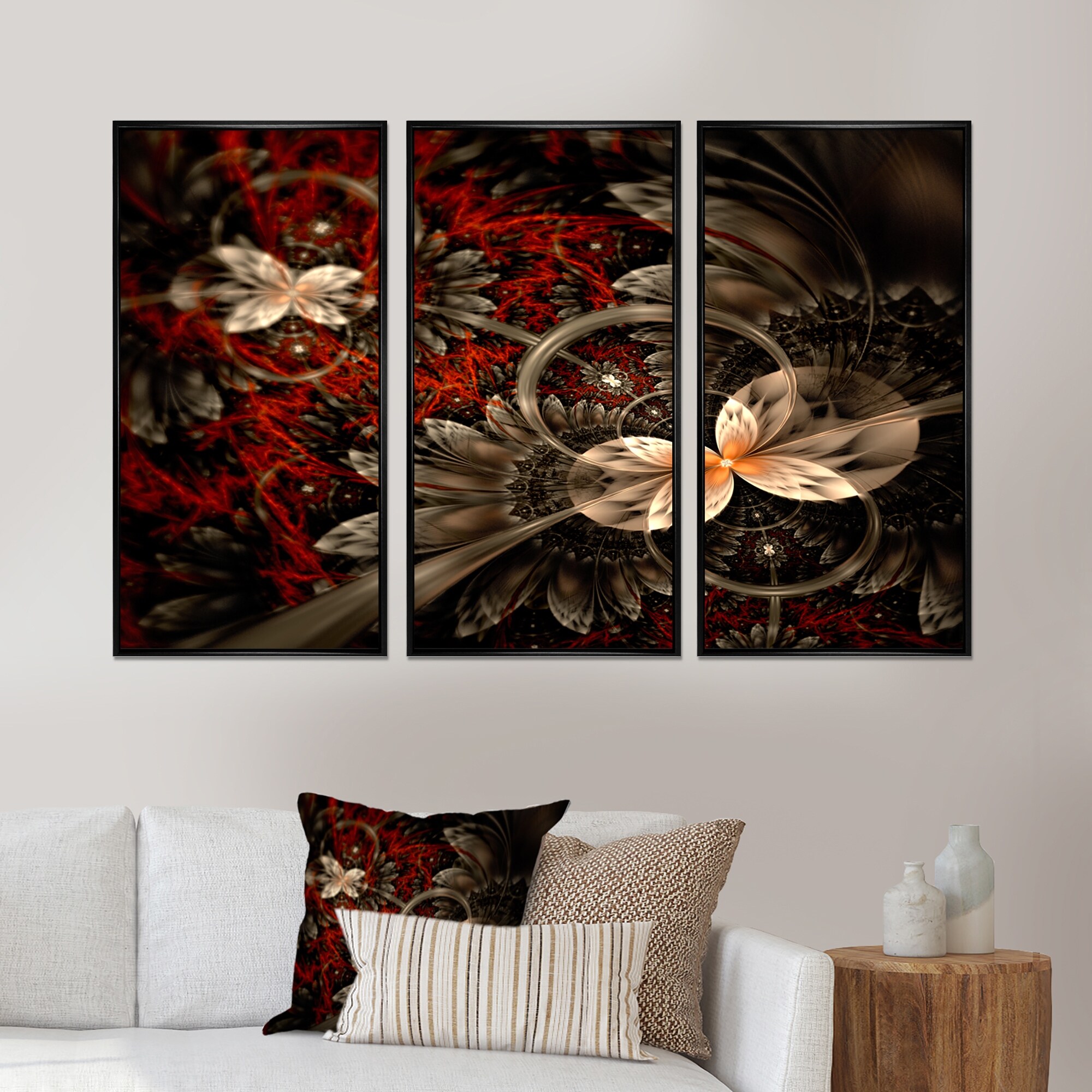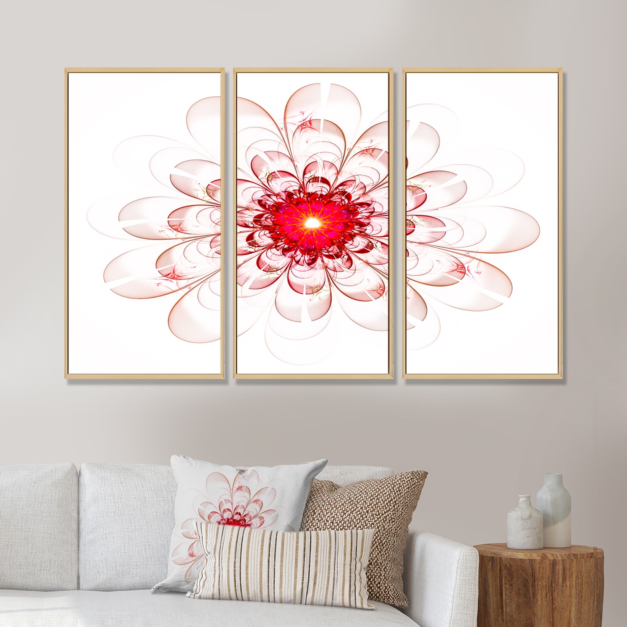 Designart "Full Bloom Fractal Flower in Red" Floral Framed Canvas Wall Art Print Set of 3 - 4 Colors of Frames