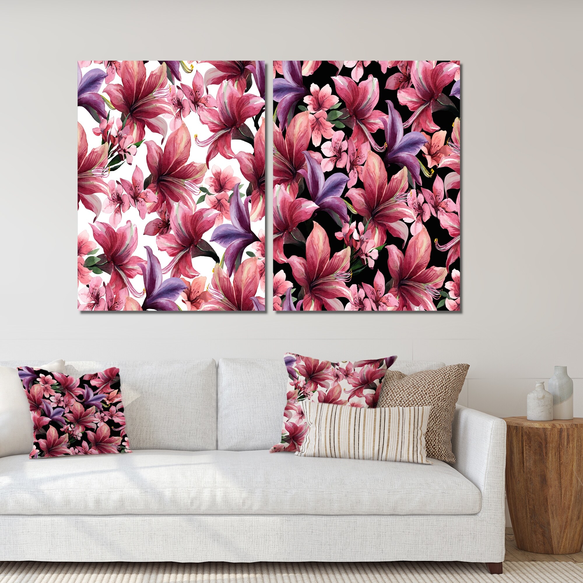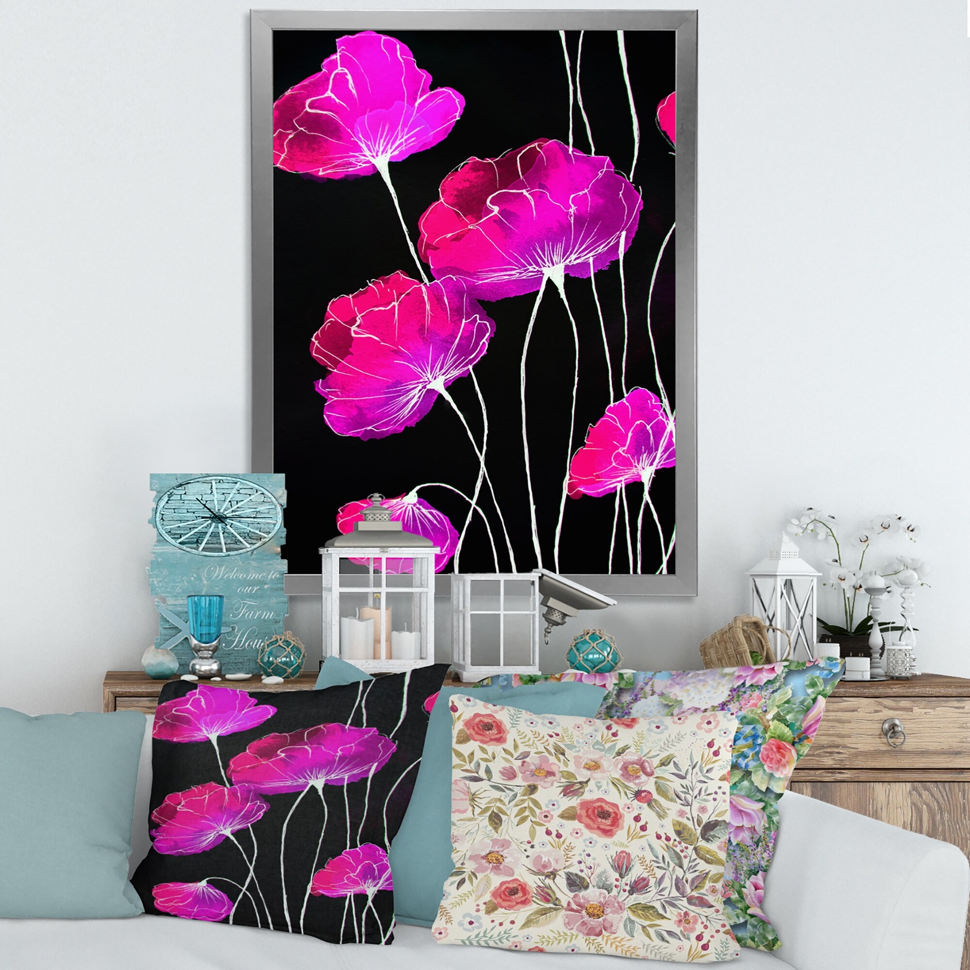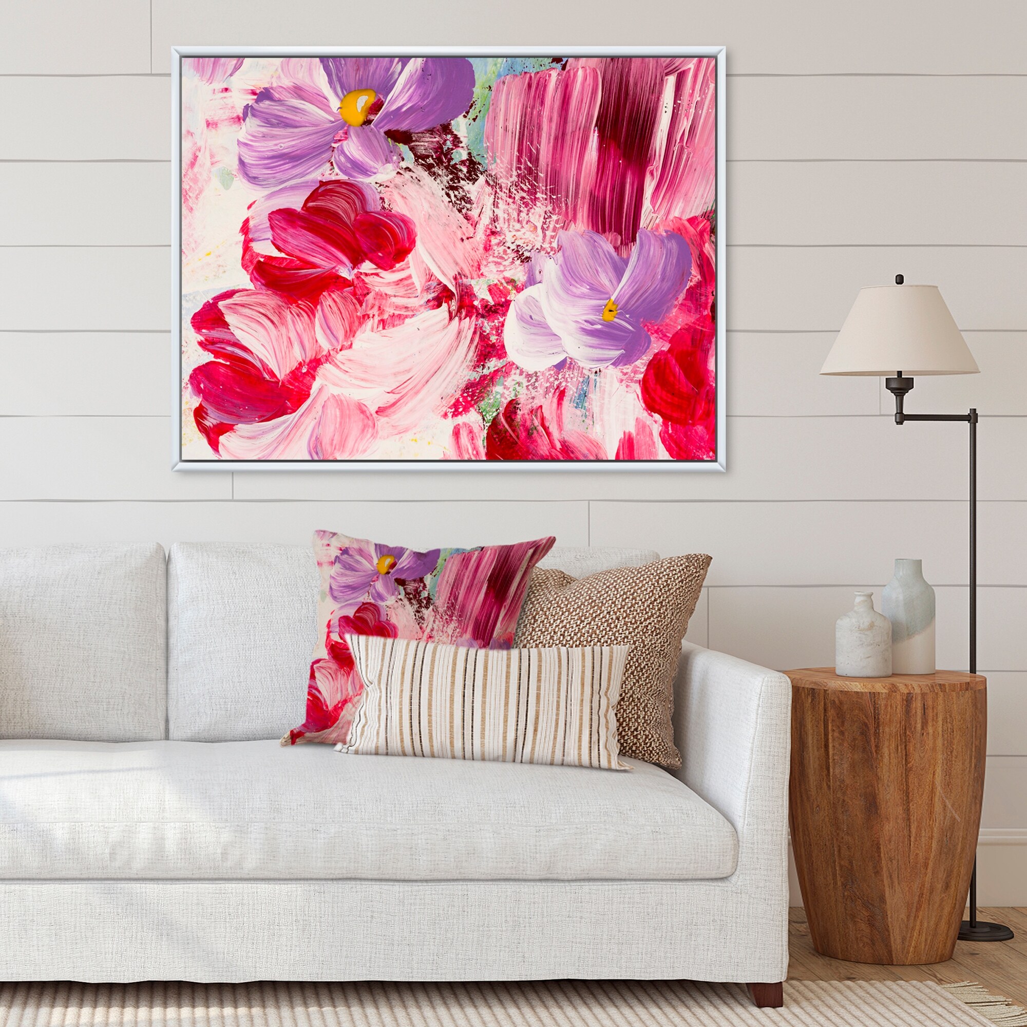 Designart "Red And Purple Abstract Flowers" Modern Framed Canvas Wall Art Print
