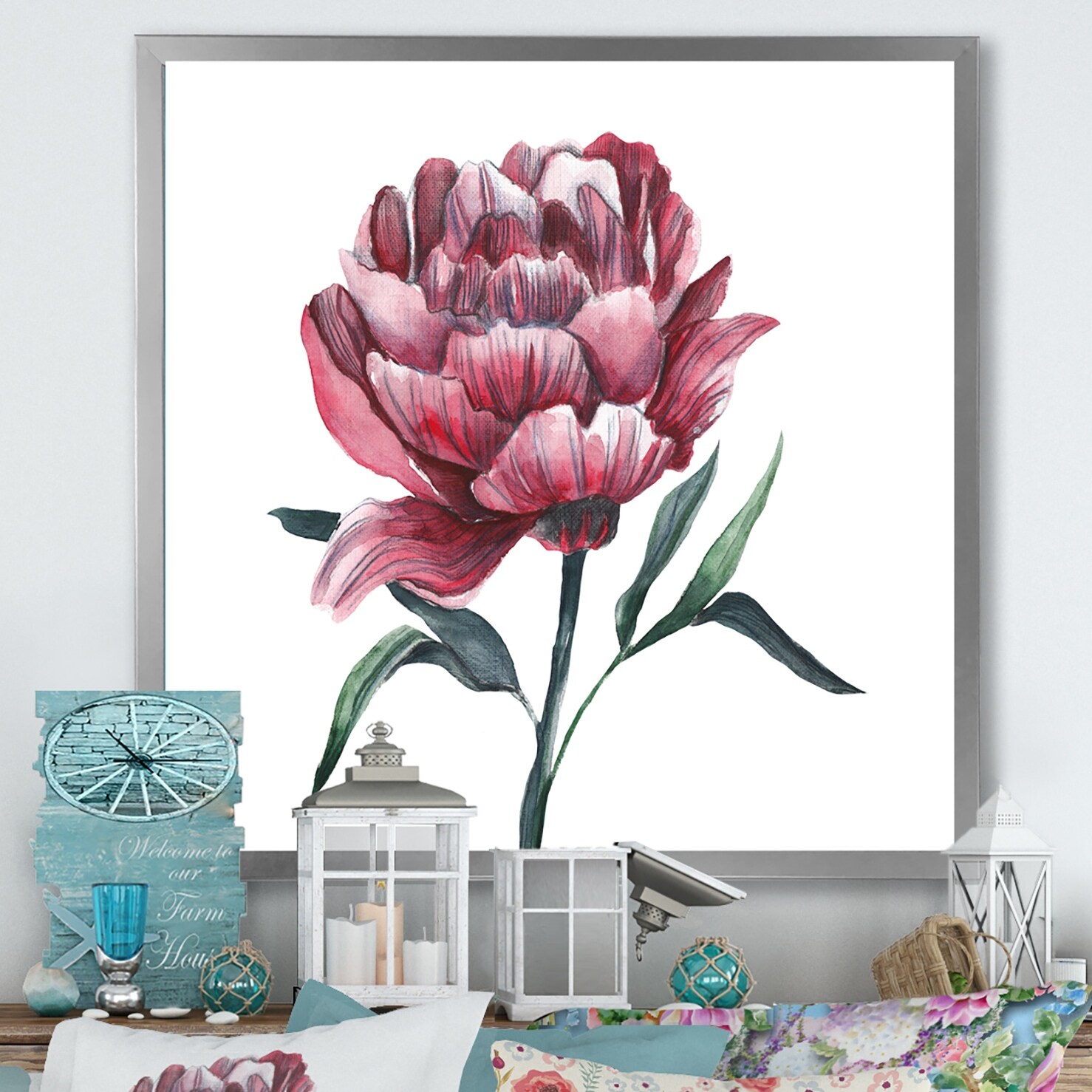Designart "Vintage Red Peony Flower" Traditional Framed artwork