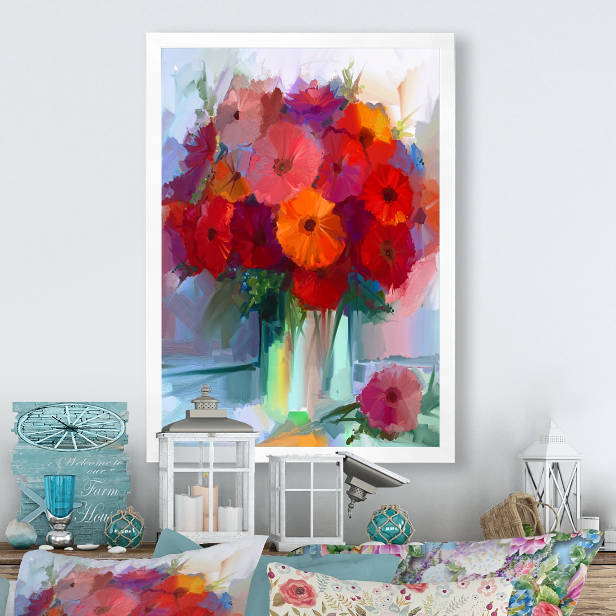 Designart "Abstract Red Gerbera Flowers II" Traditional Framed artwork