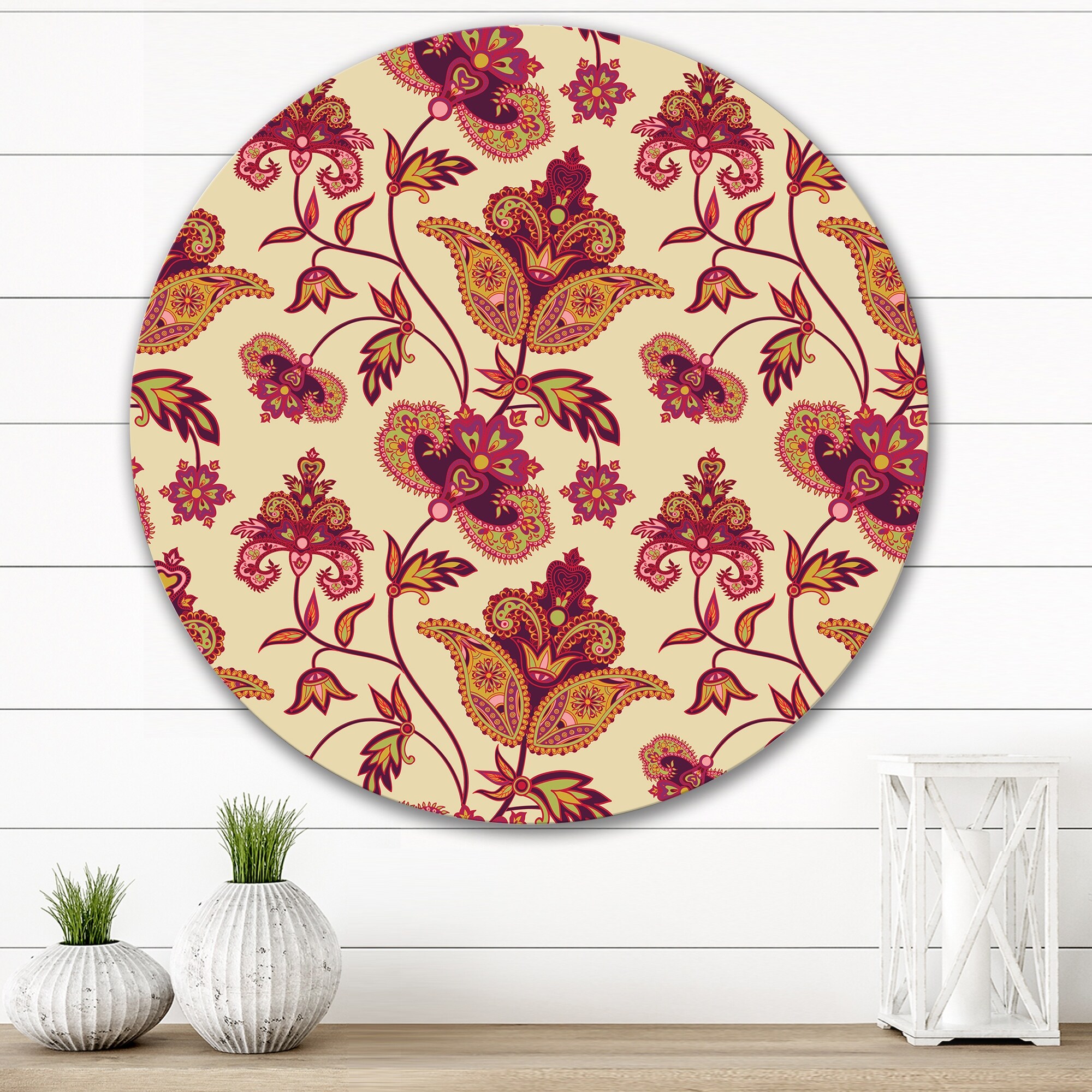 Designart 'Red Vintage Flowers on Beige' Patterned Metal Circle Wall Art
