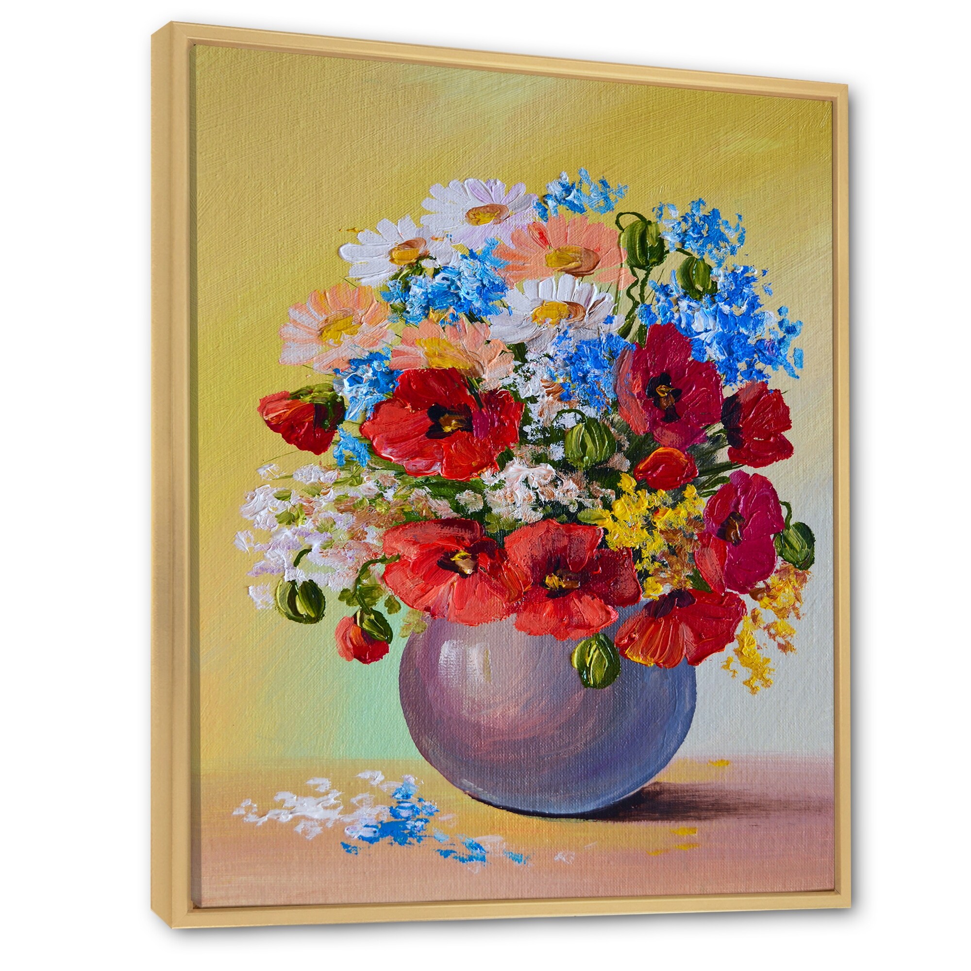 Designart "Still Life A Bouquet of Red and Blue Flowers" Traditional Framed Canvas Wall Art Print