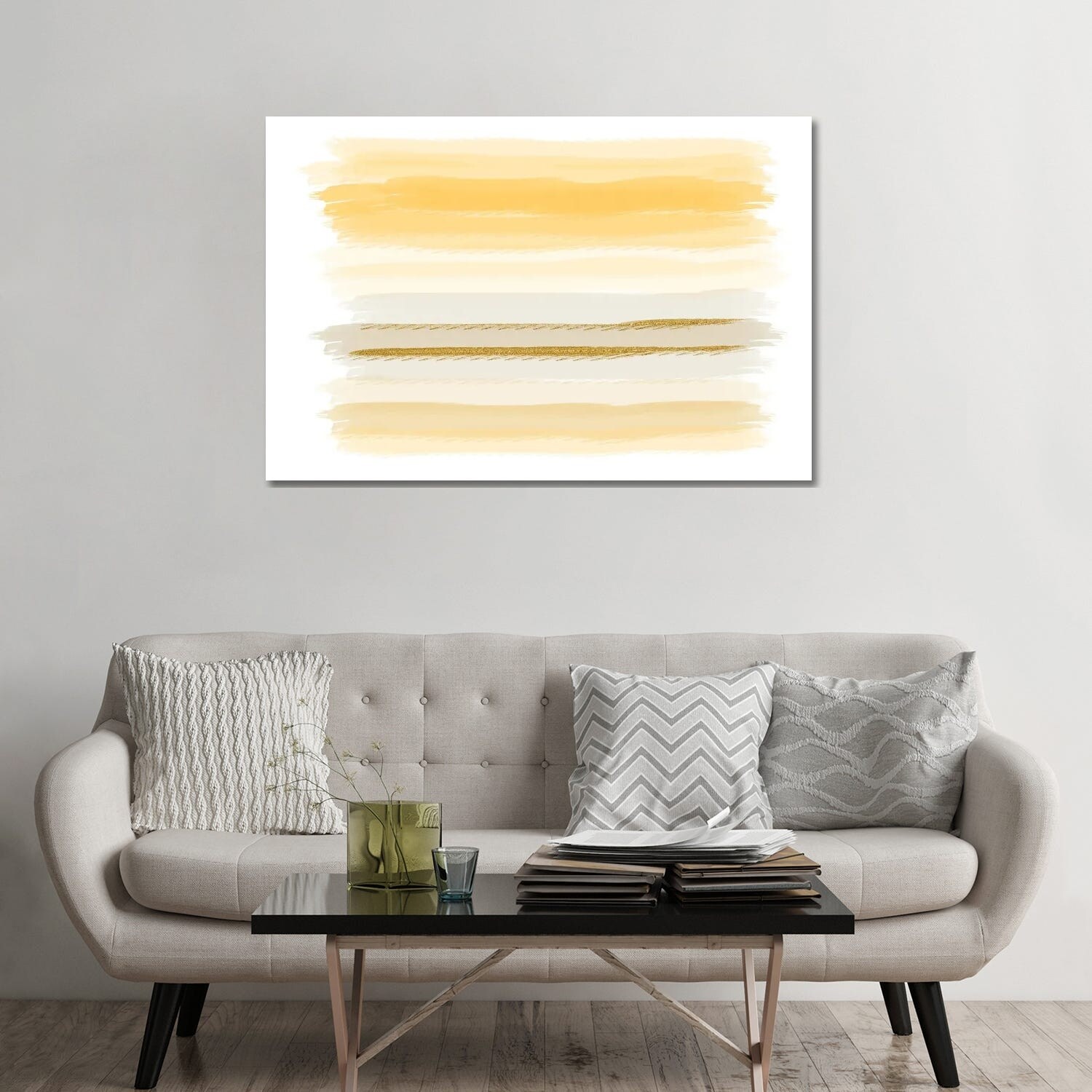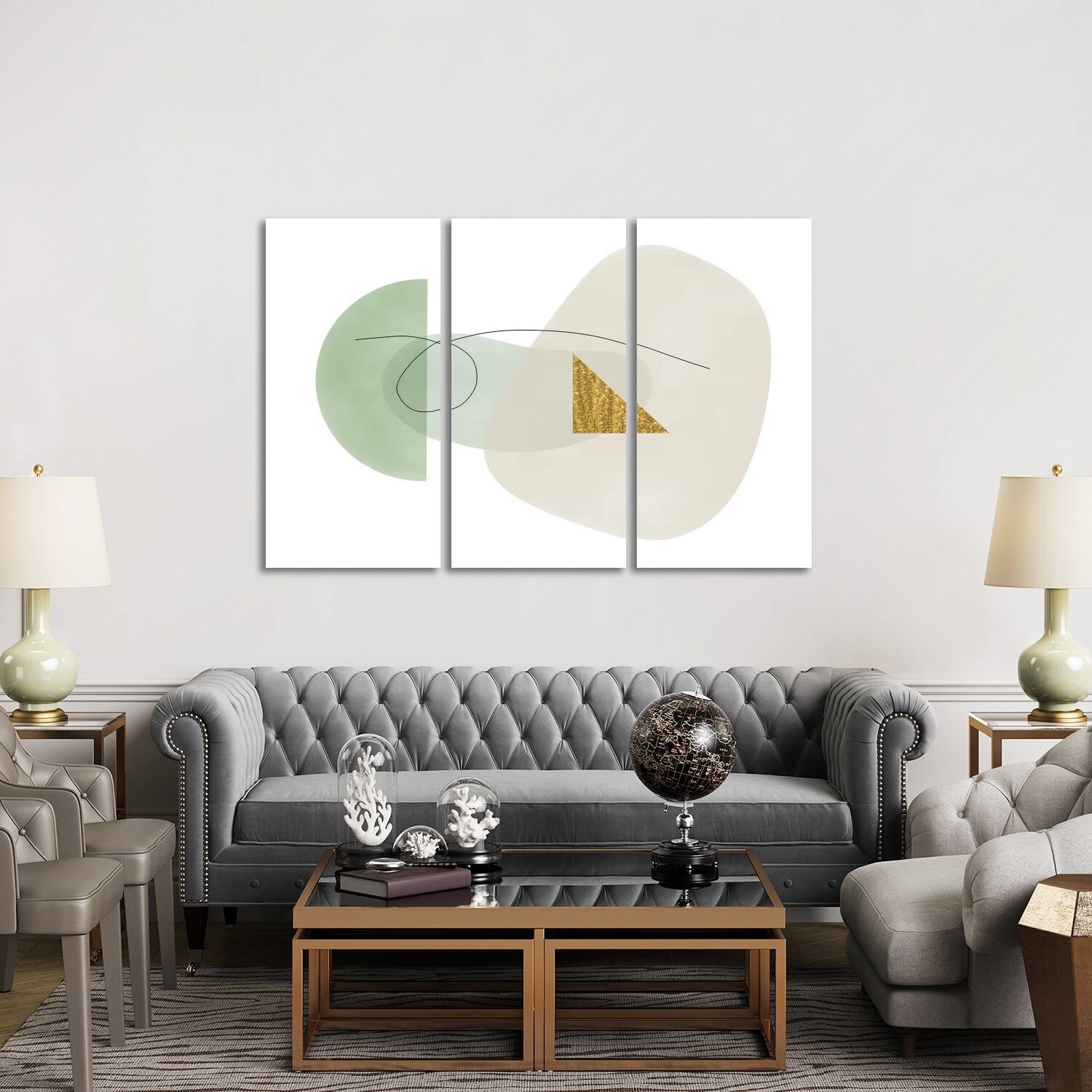 iCanvas "Muted Green Shapes With Gold Triangle Abstract" by Alison Frank 3-Piece Canvas Wall Art Set