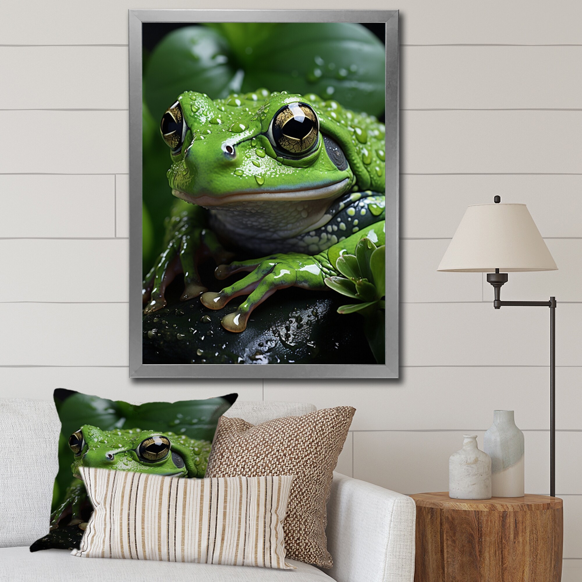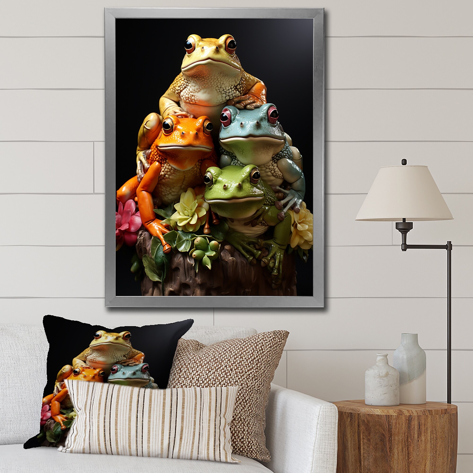 Designart "Animal Frog Family I" Frogs & Toads Framed Wall Art Living Room