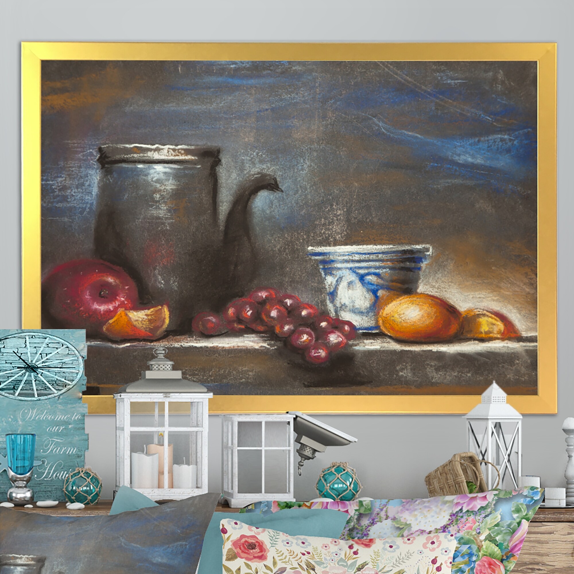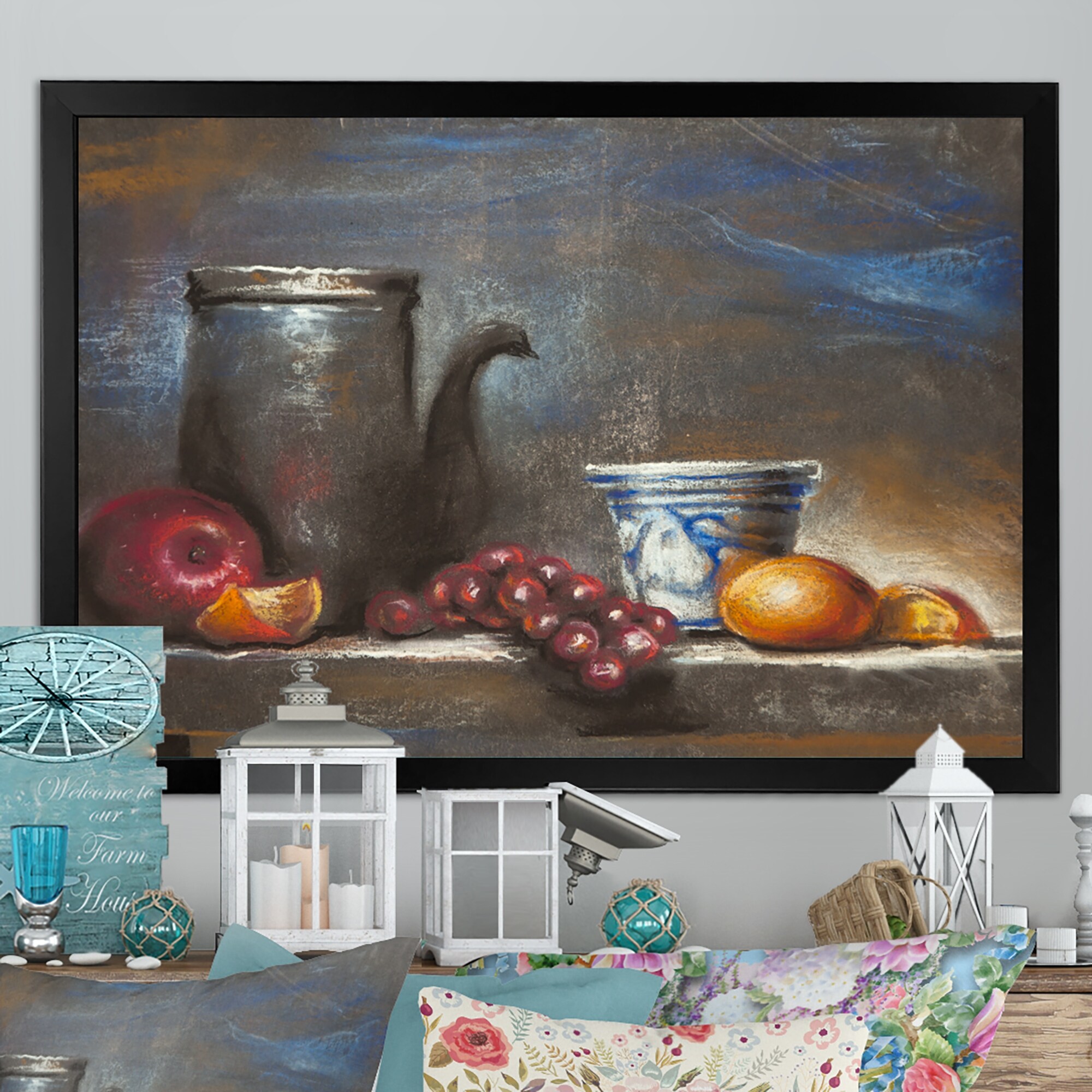 Designart "Still Life With Fruits" Farmhouse Framed Art Print