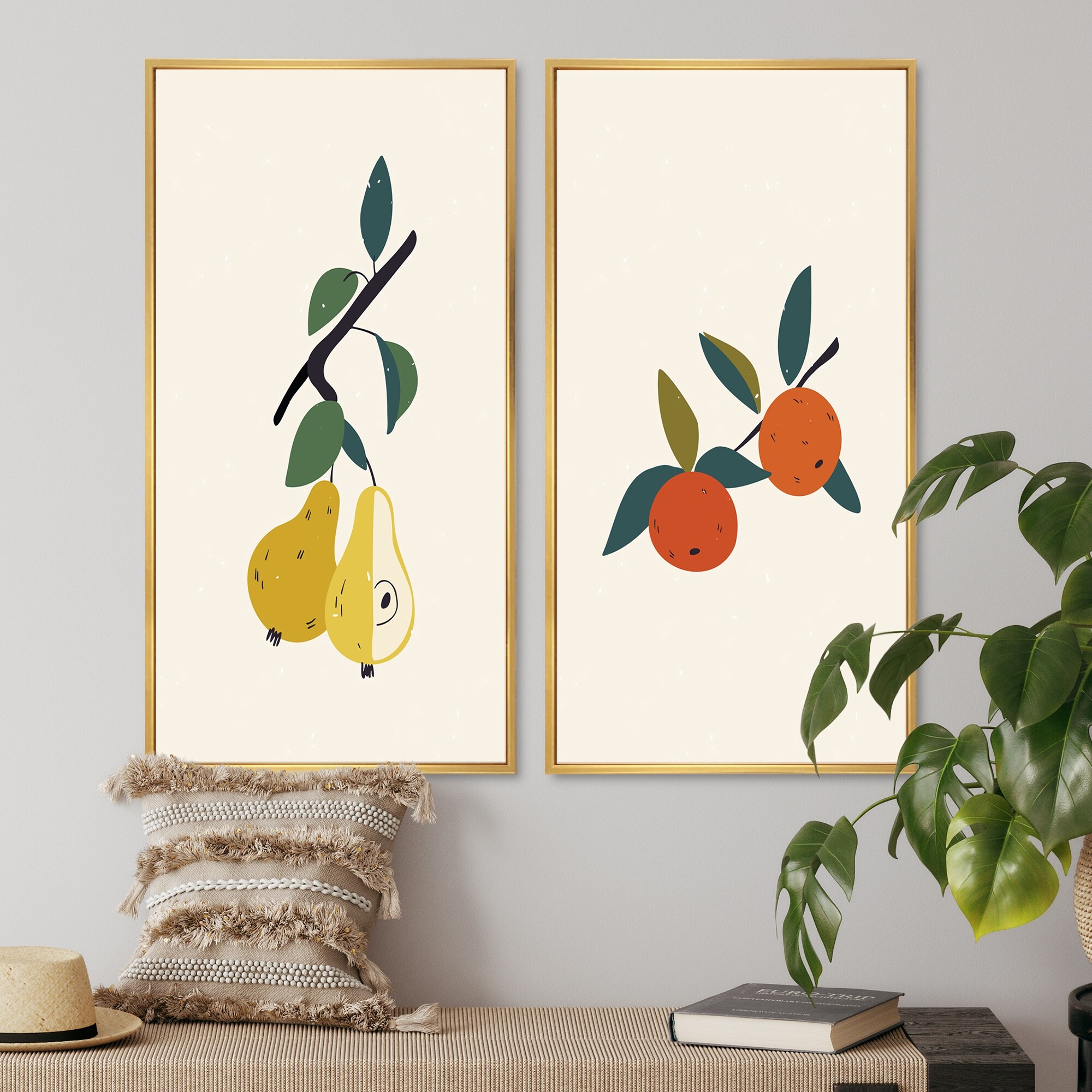 Designart "Retro Fruits in Pastel Colors I" Floral Framed Art Set of 2 Pieces