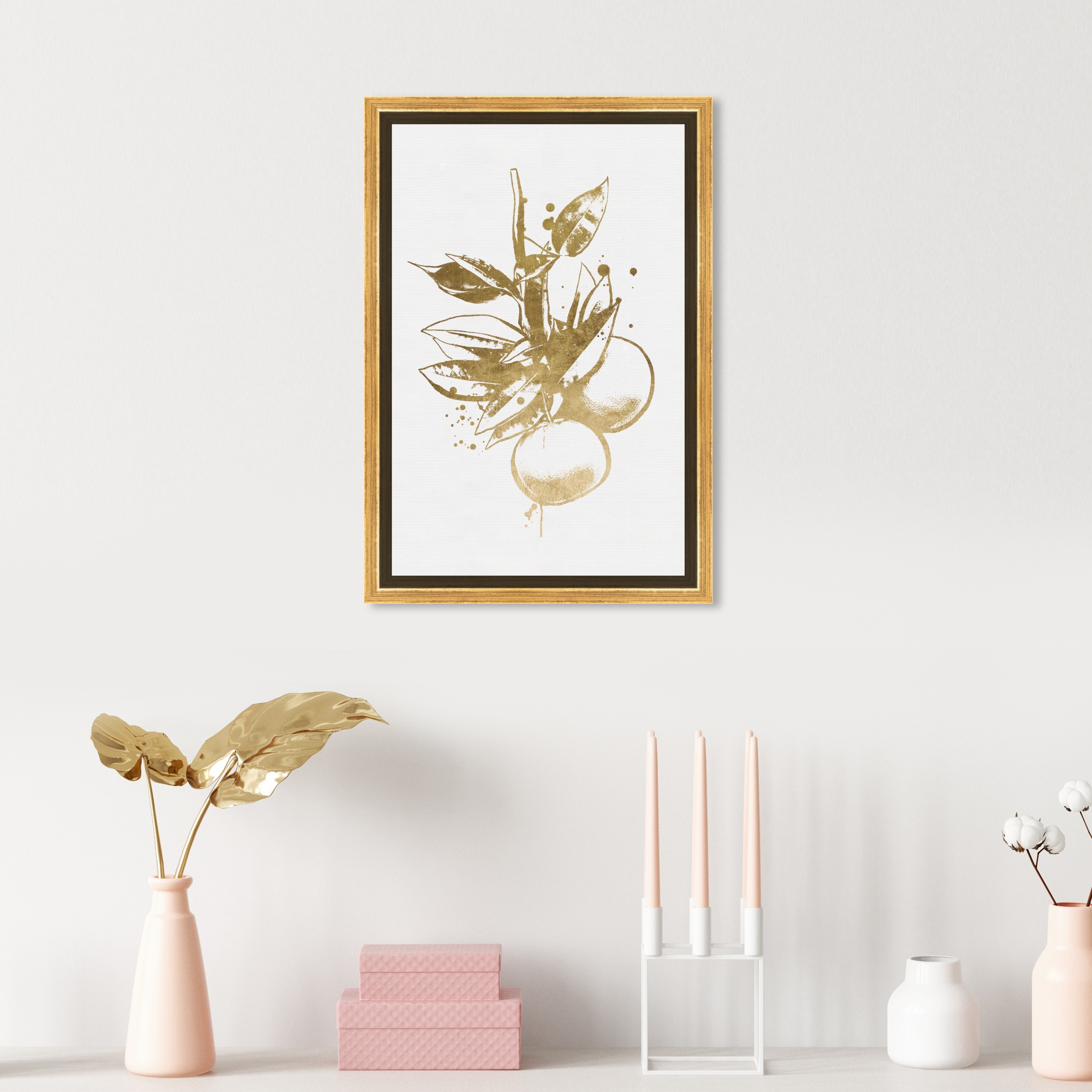 Oliver Gal 'Golden Inked Fruits' Floral and Botanical Wall Art Framed Canvas Print Botanicals - White, Gold