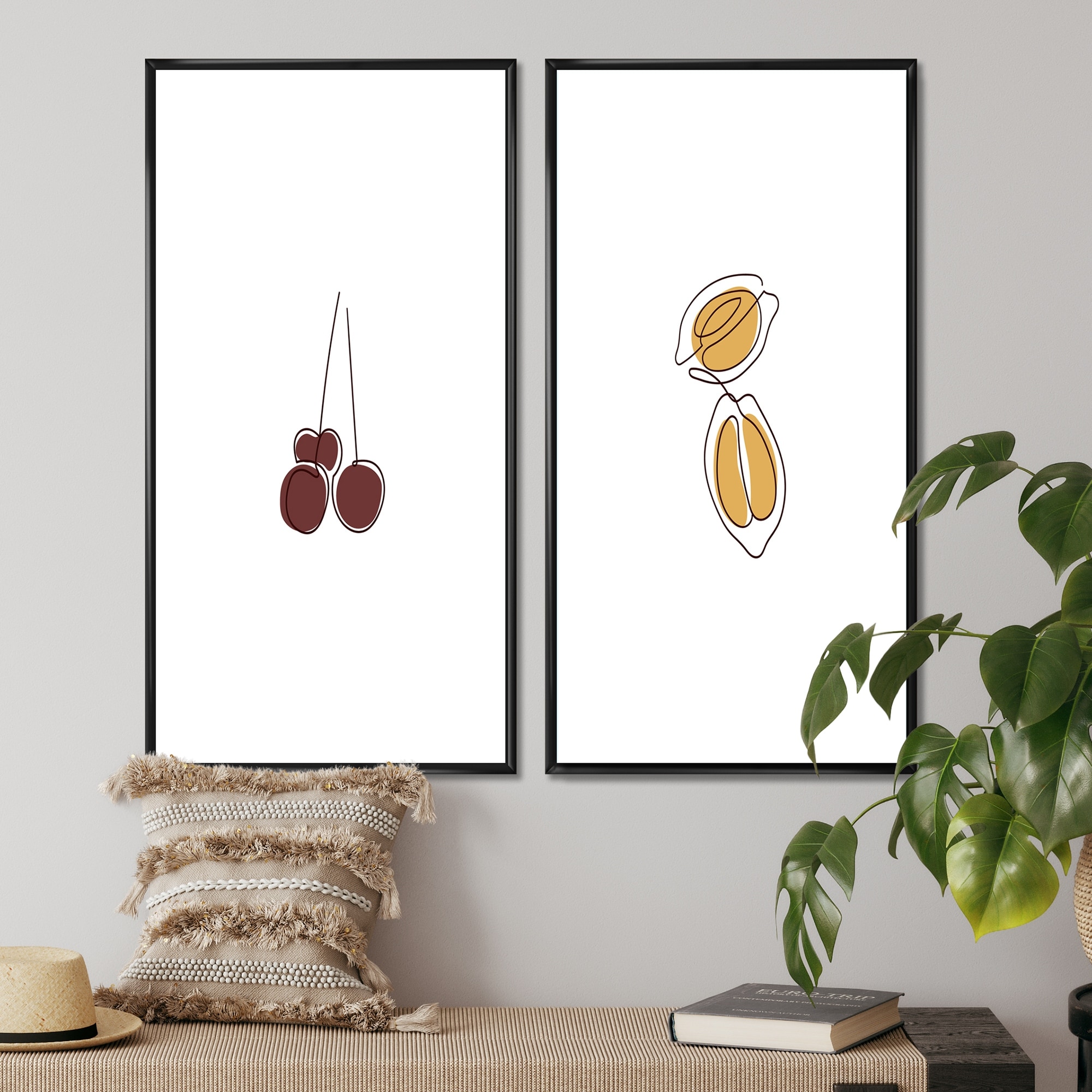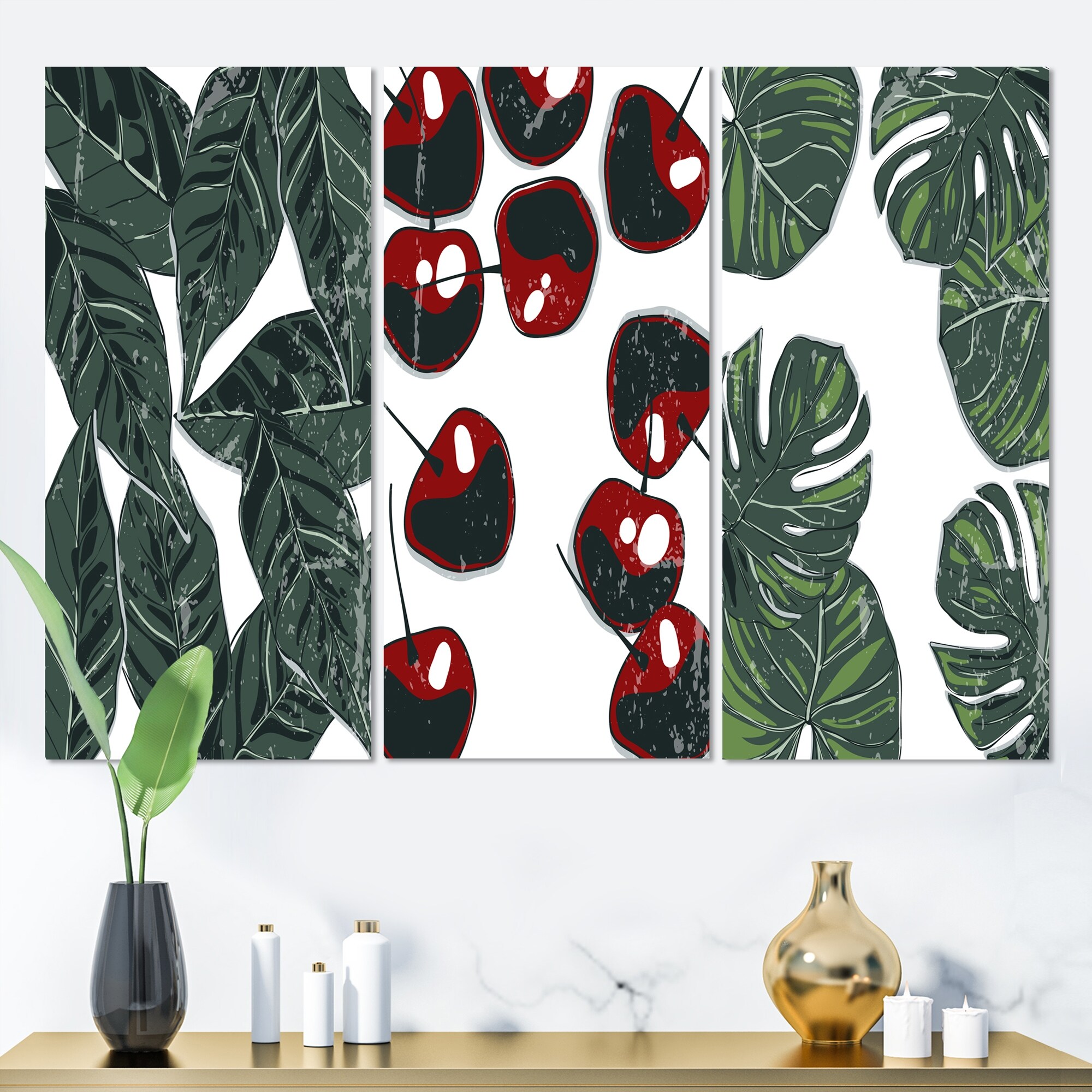 Designart 'Fruit And Leaves Minimalism I' Mid-Century Modern Art Set of 3 Pieces