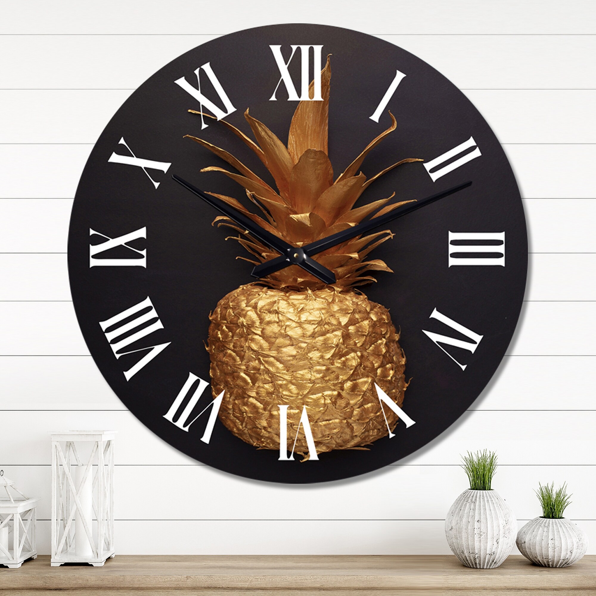 Designart 'Gold Painted Tropical Fruits on Black III' Traditional wall clock