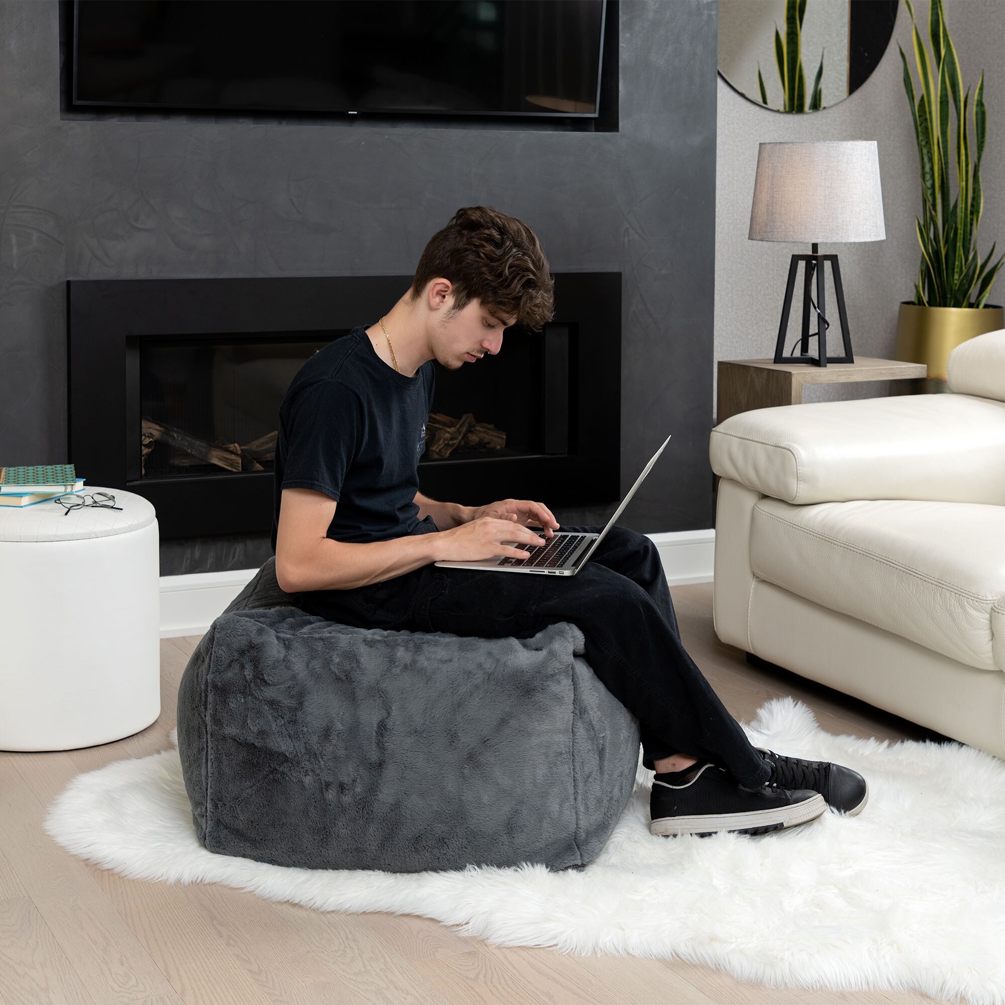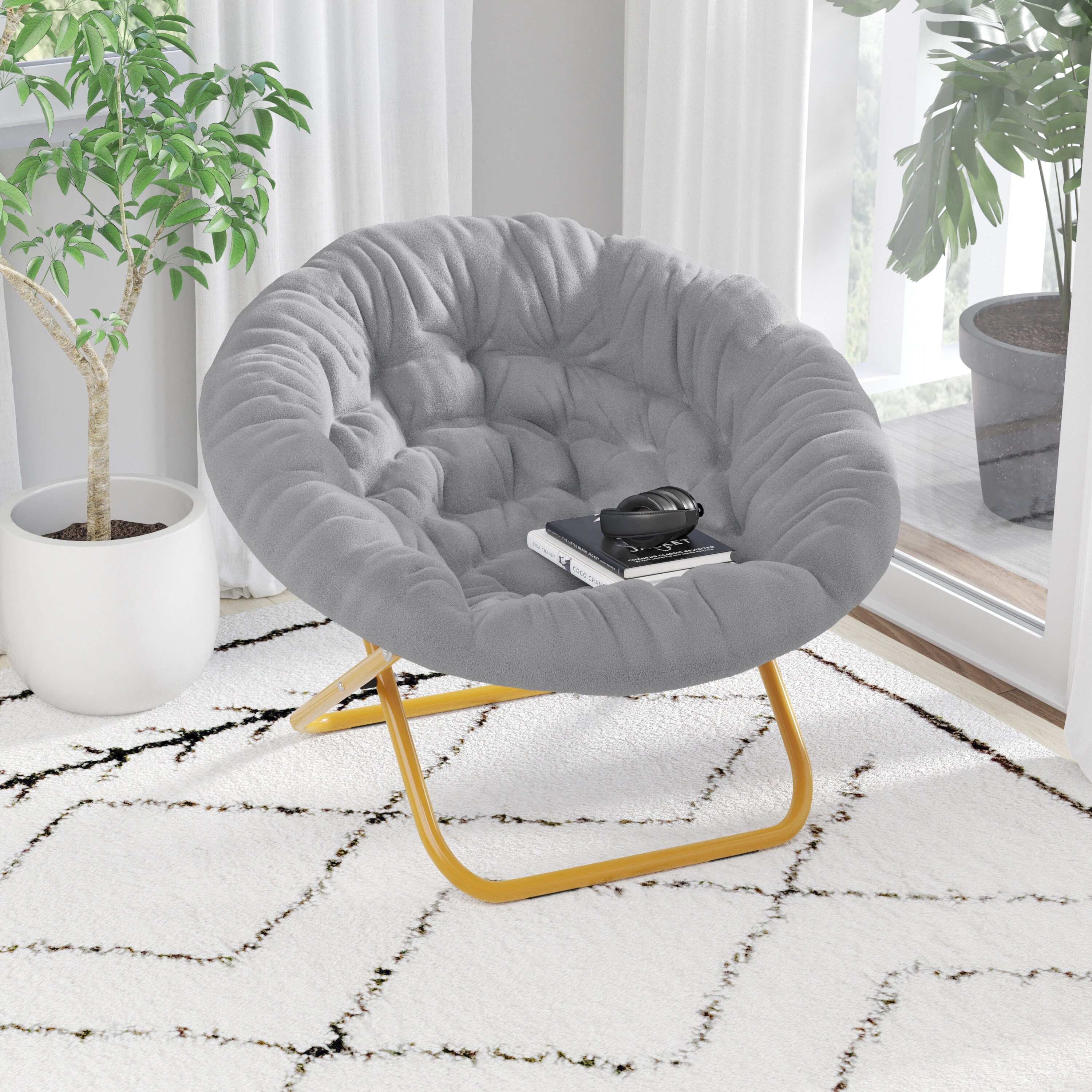 Folding XL Faux Fur Saucer Chair for Dorm or Bedroom