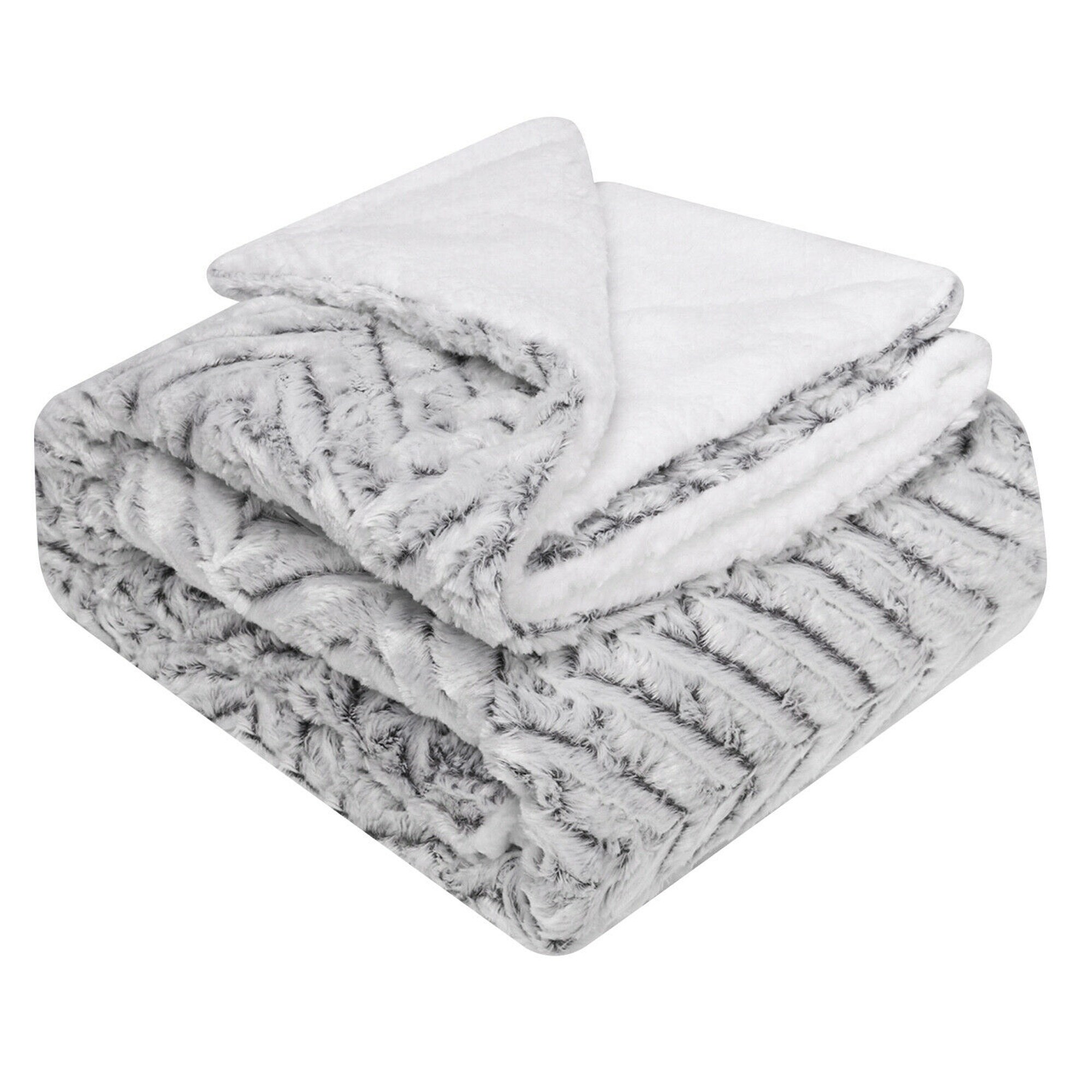 Faux Fur Reversible Fleece Blanket Light Gray