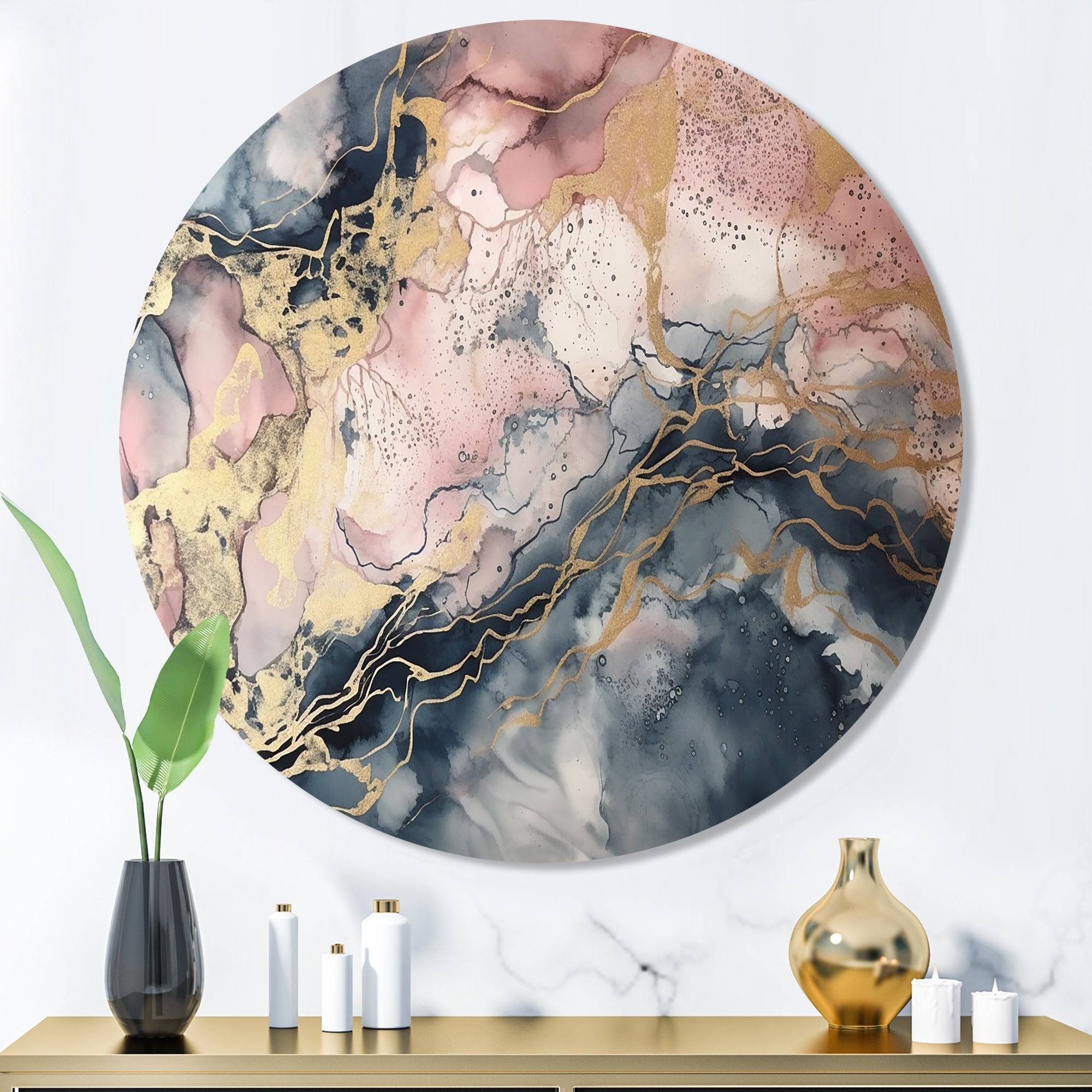 Designart "Exploring The Depths of Pink Geode III" Abstract Marble Metal Round Wall Art