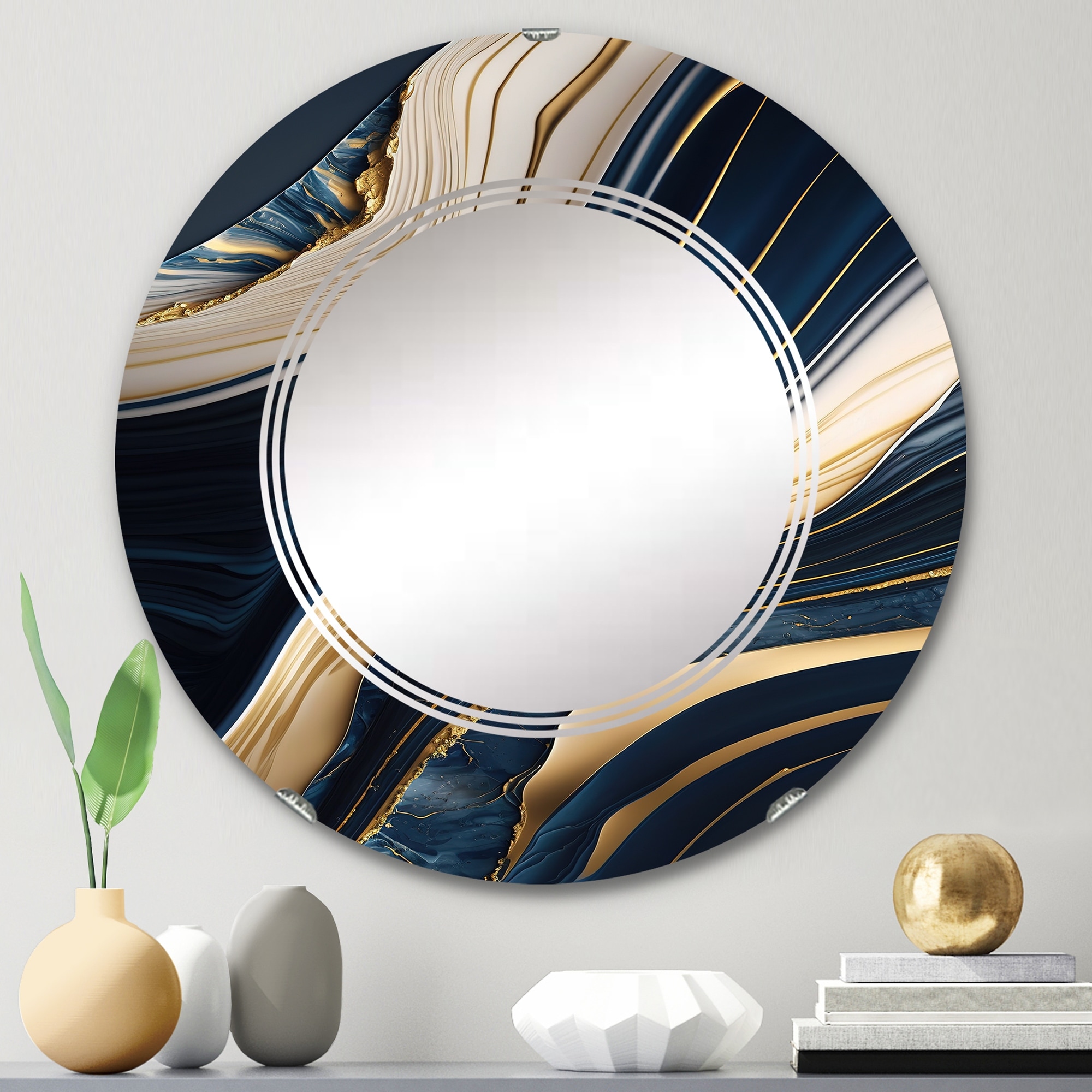 Designart 'Abstract Geode Waves Blue And Gold II' Printed Modern Waves Wall Mirror