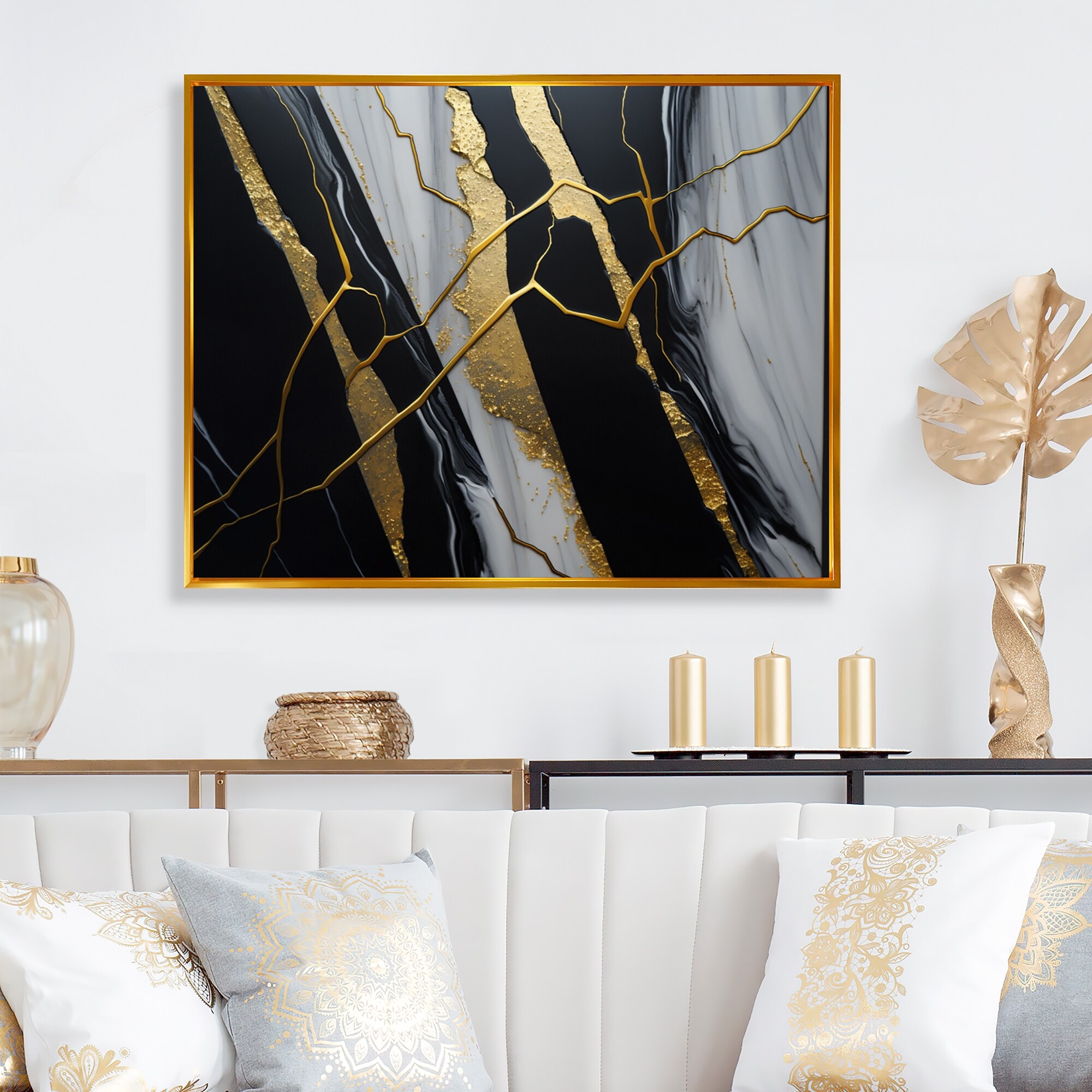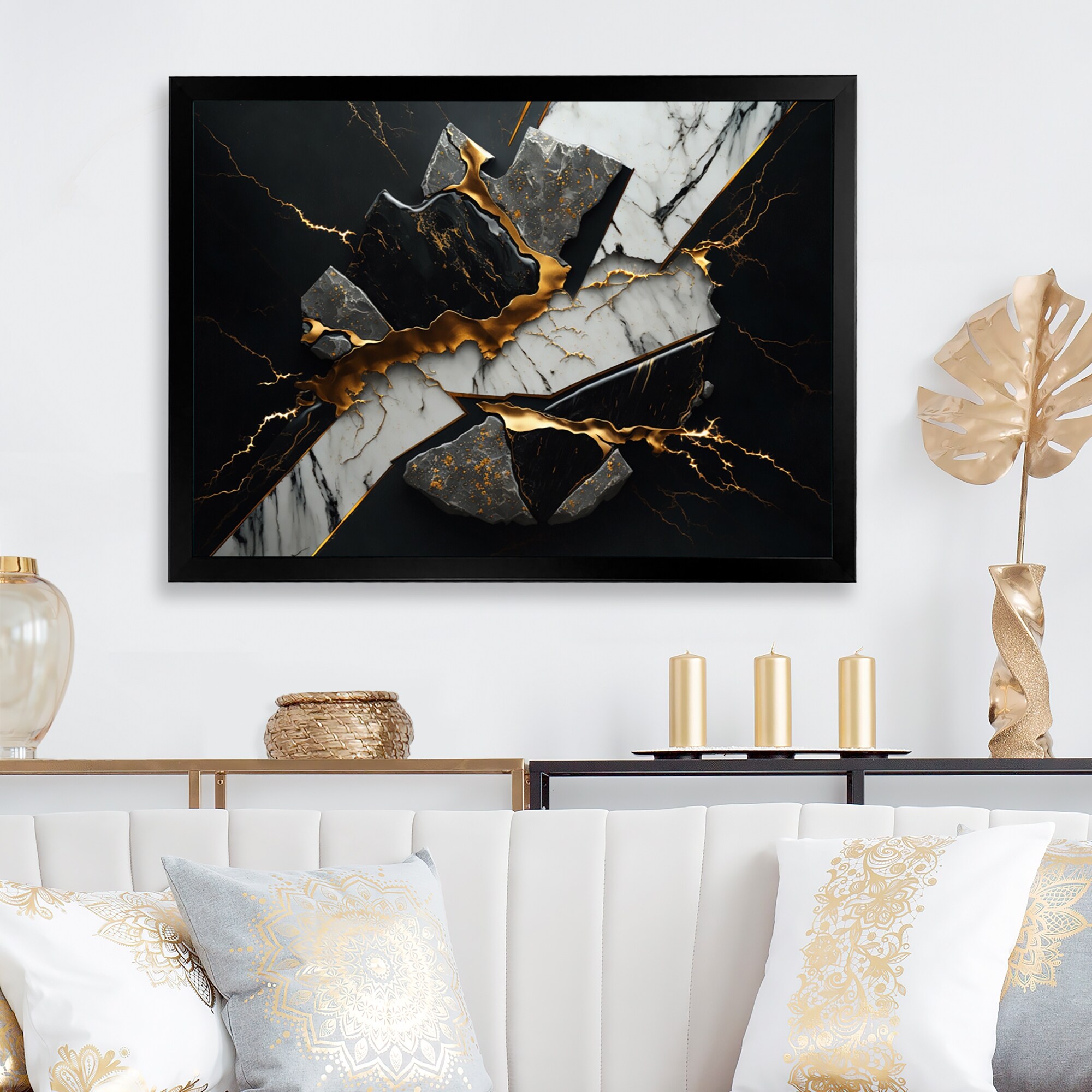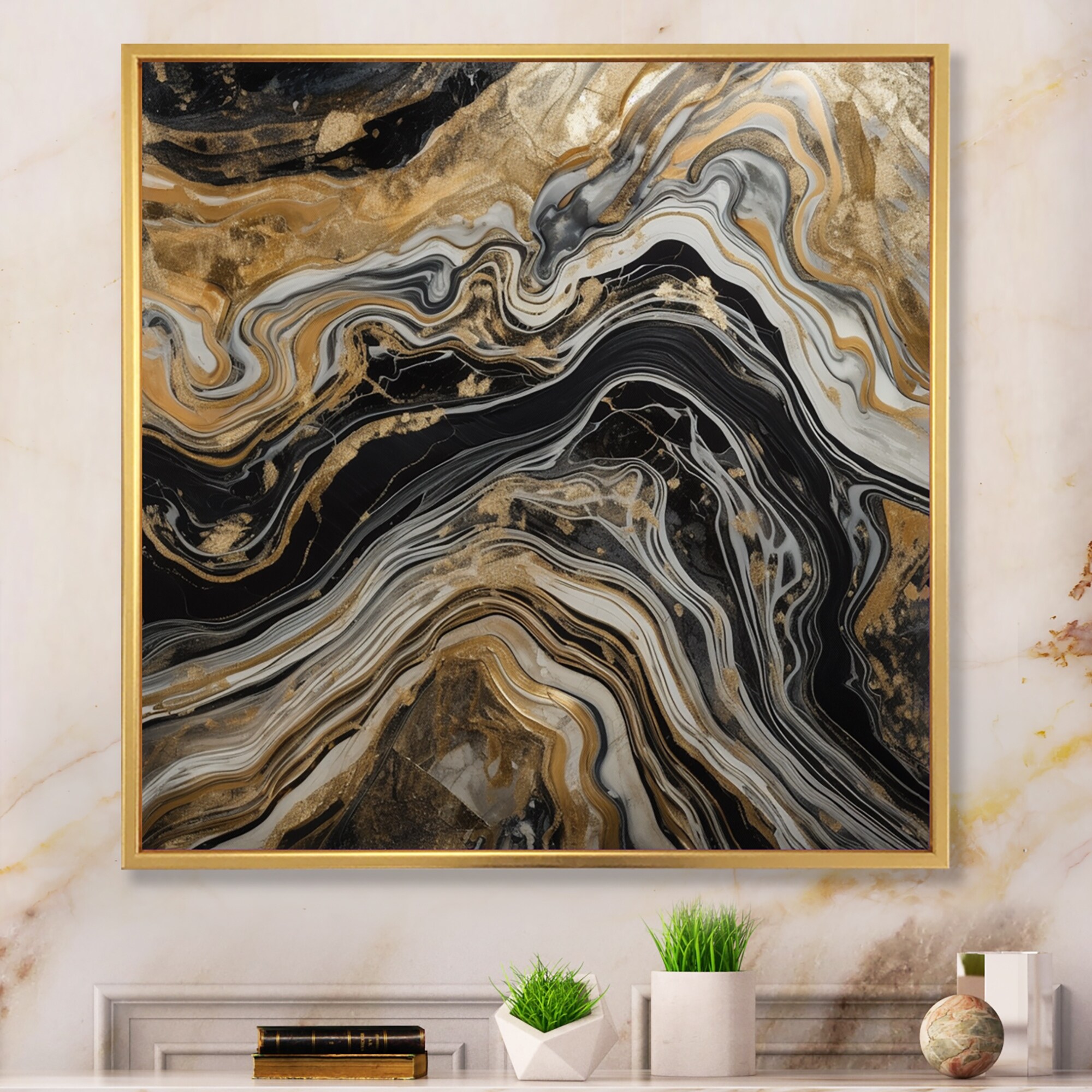Designart "Exploring The Depths of Black Gold Geode Ii" Abstract Marble Framed Canvas Print
