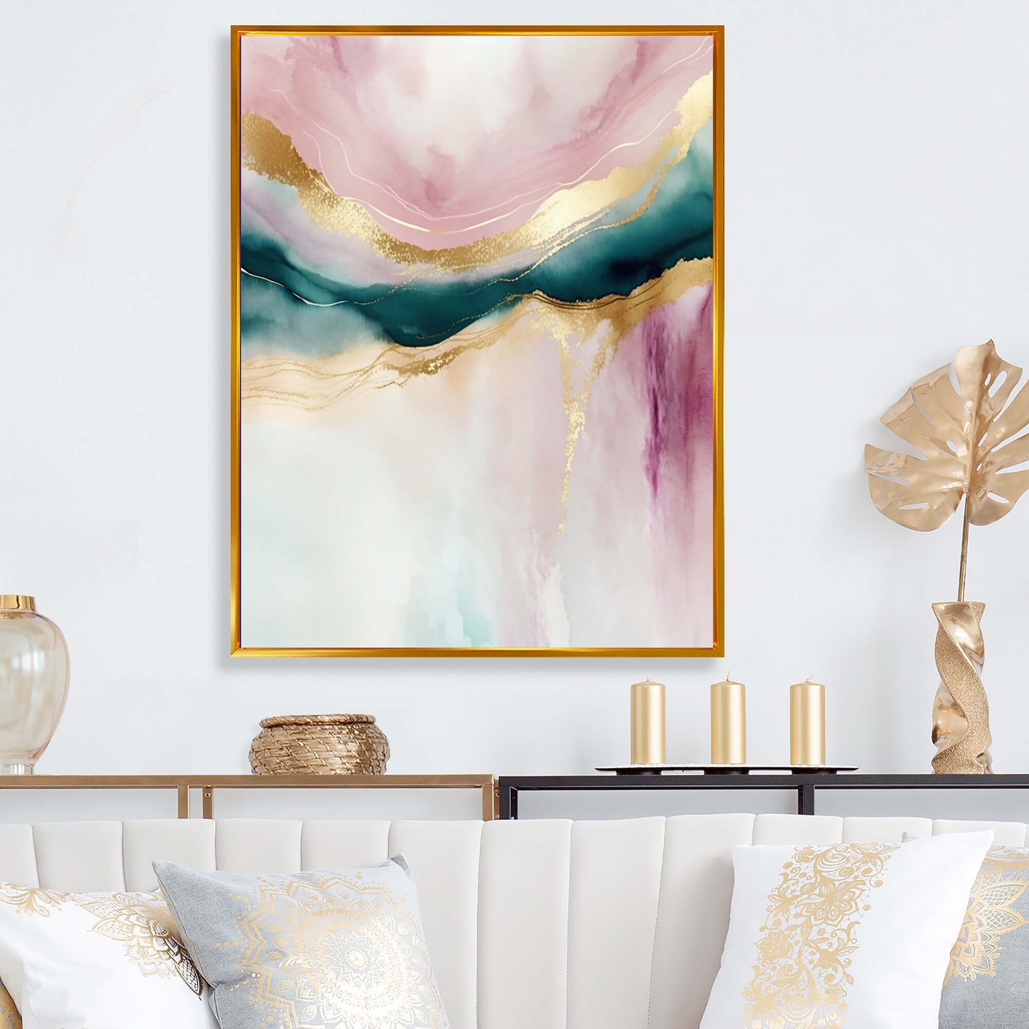 Designart "Abstract Geode Pink And Green Marble IV" Marble Abstract Framed Canvas Art Print