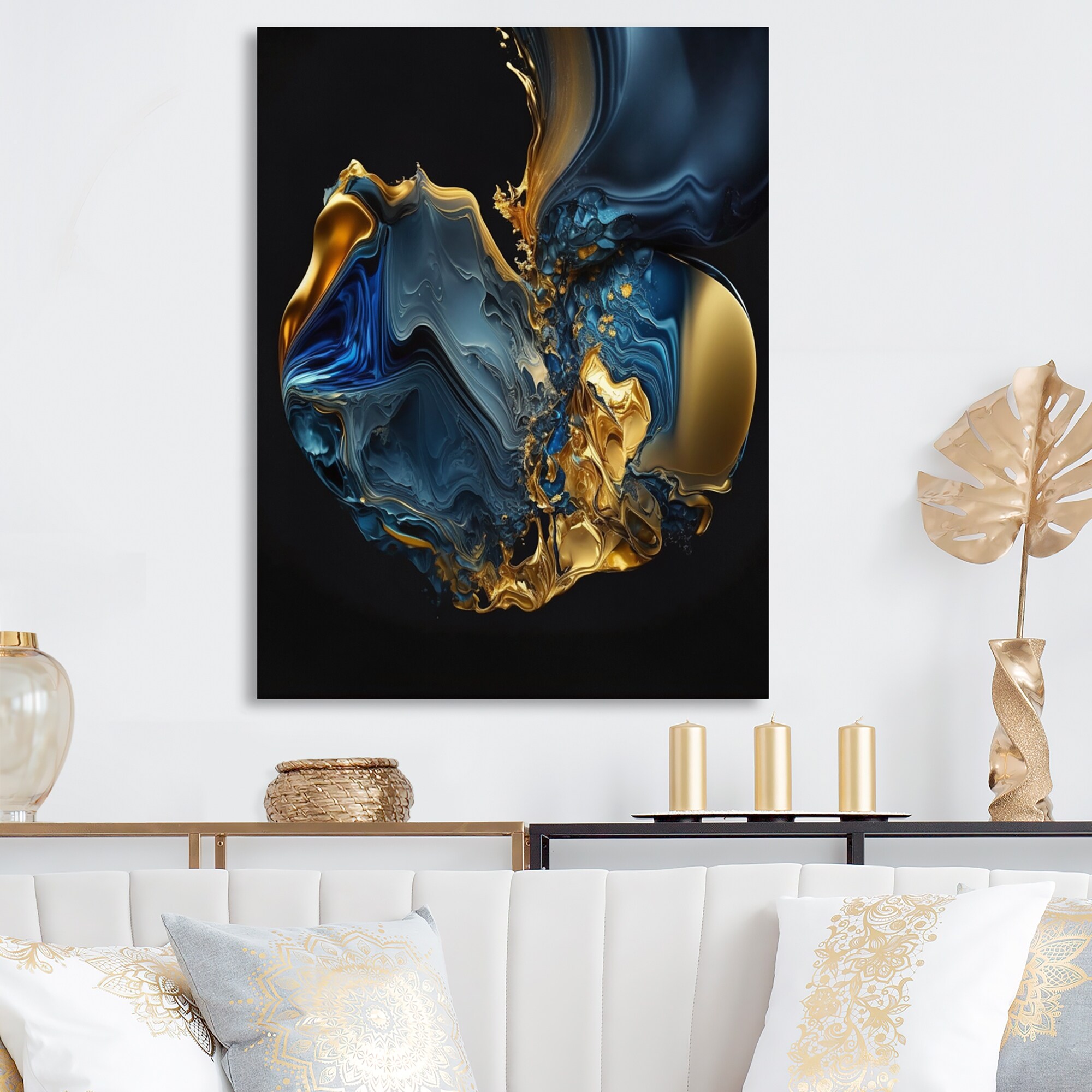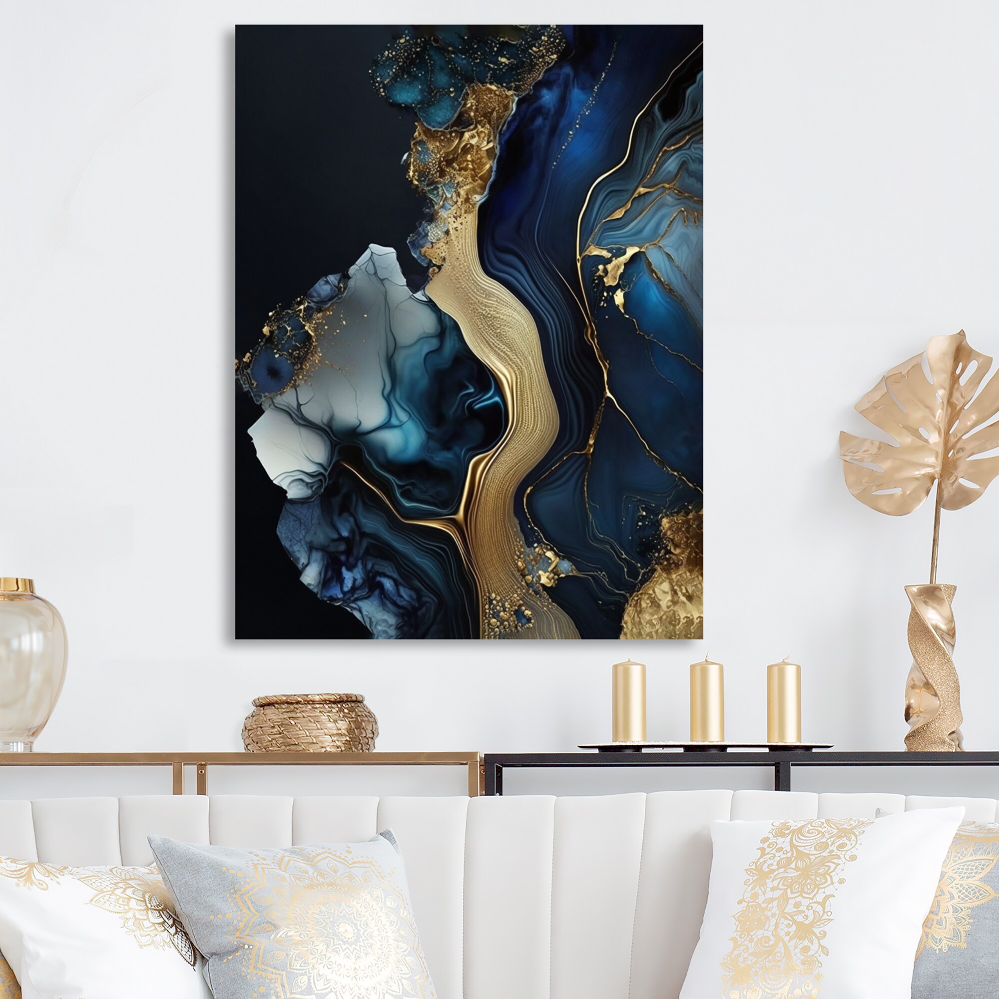 Designart 'Abstract Marble Geode Blue And Gold' Abstract Liquid Ink Metal Wall Art