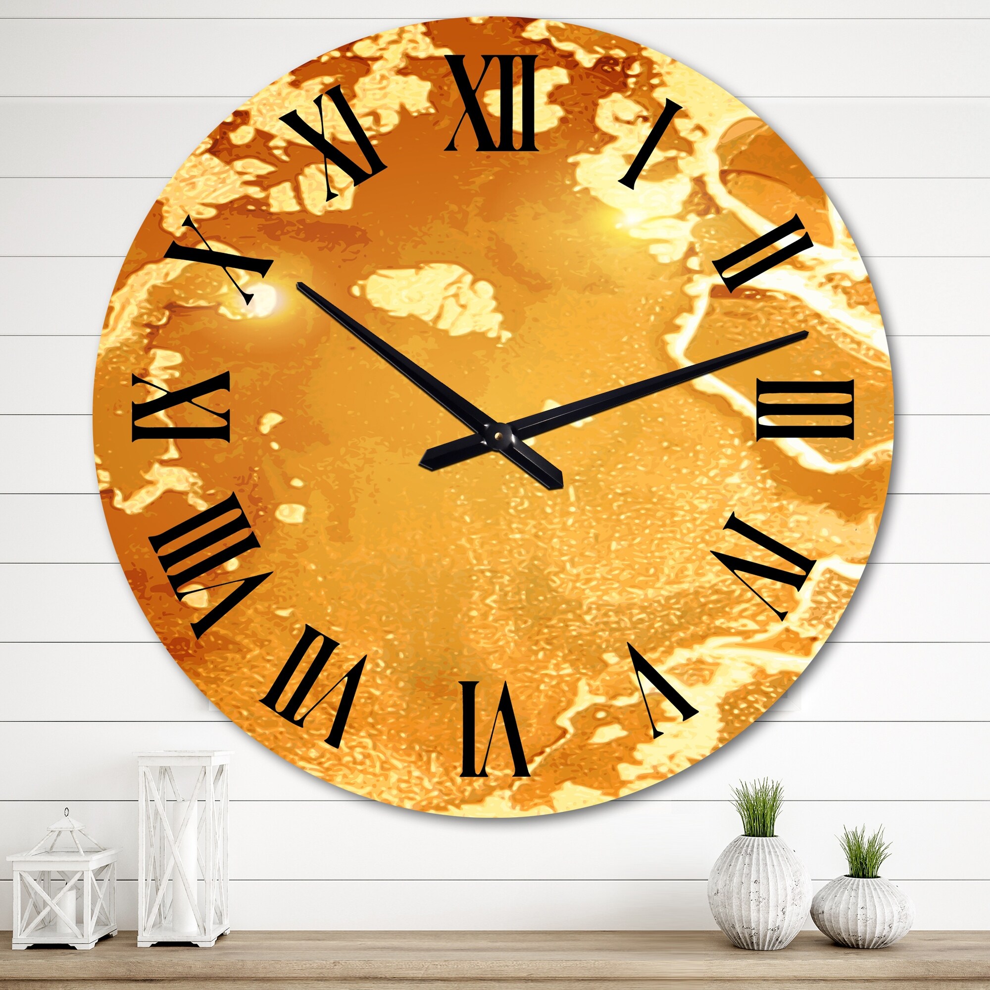 Designart, 'Orange And Gold Geode Liquid Art I' Glam wall clock